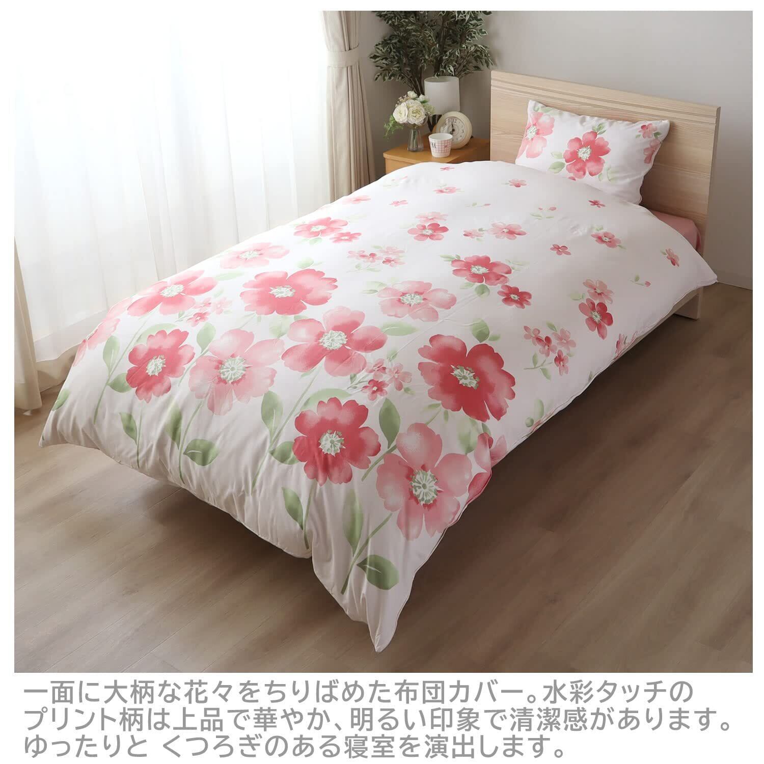 メリーナイト 掛け布団カバー 「水彩フラワー」 ピンク シングルロング 約150×210cm 両サイドファスナー ふとんが入れやすい 洗える シワになりにくい FF12113-16