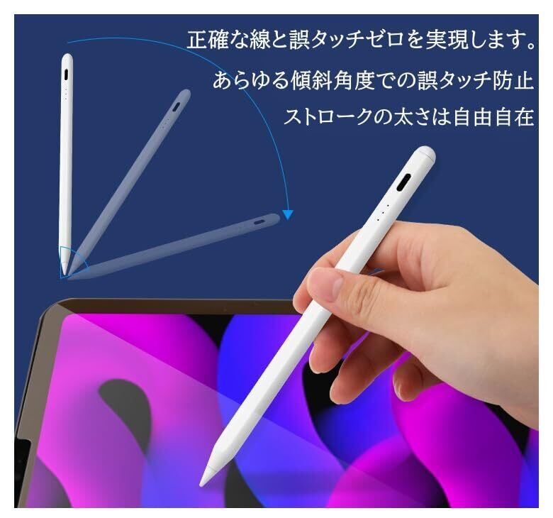 【iPad専用】QISI タッチペン iPad 2018年以降 誤作動防止 傾き感知 アップル純正 ペンシル 同等POM製ペン先 採用 スタイラスペン パームリジェクション バッテリー残量表示 極細 交換ペン2個付き (ホワイト)