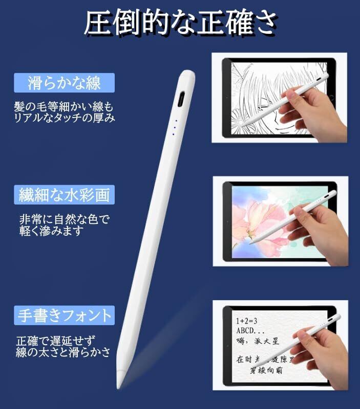 【超高感度/超高精度/極細ペン先】 高性能センサーを採用で正確なタップと滑らかな操作を実現。線の途切れはもちろん、遅延・位置ズレもなく、ペン先感知機能が非常に繊細。どんどん書きたくなってしまう心地よい書き味に、誰もが虜になってしまうこと間違いなしです。 丸みのあるペン先は直径1.0mmと極細で、材質は純正のアップルペンシルと同じPOM素材を採用し、画面に傷つきにくい。本格的なスケッチからちょっとした手書きメモ、ツムツムなどのゲームまでいろいろな用途で大活躍できます。