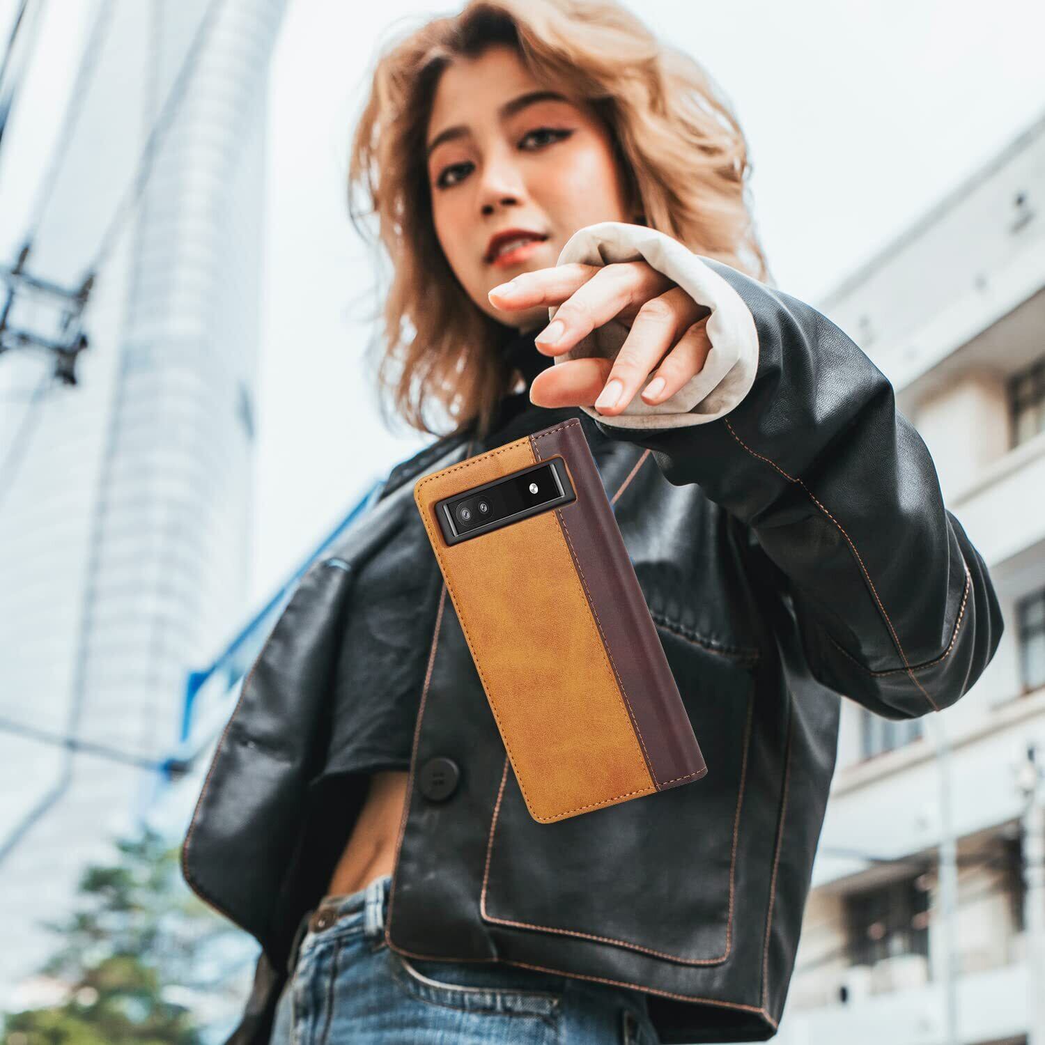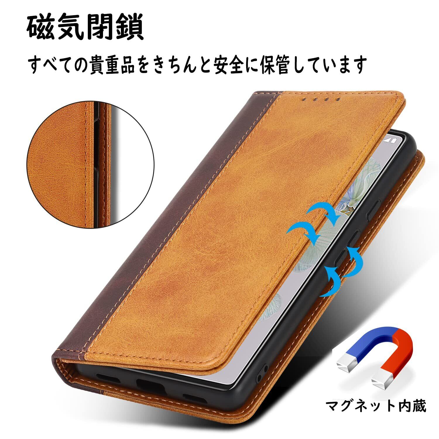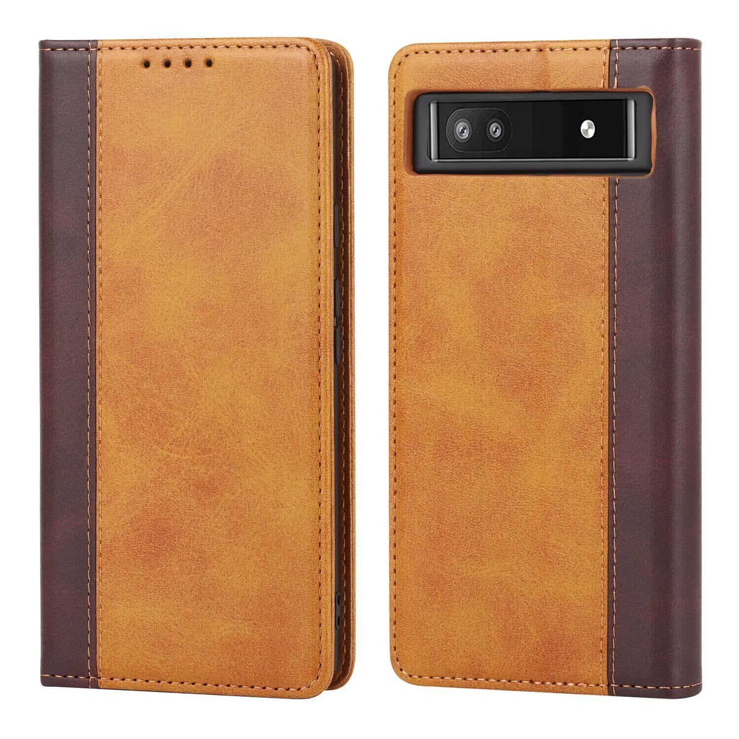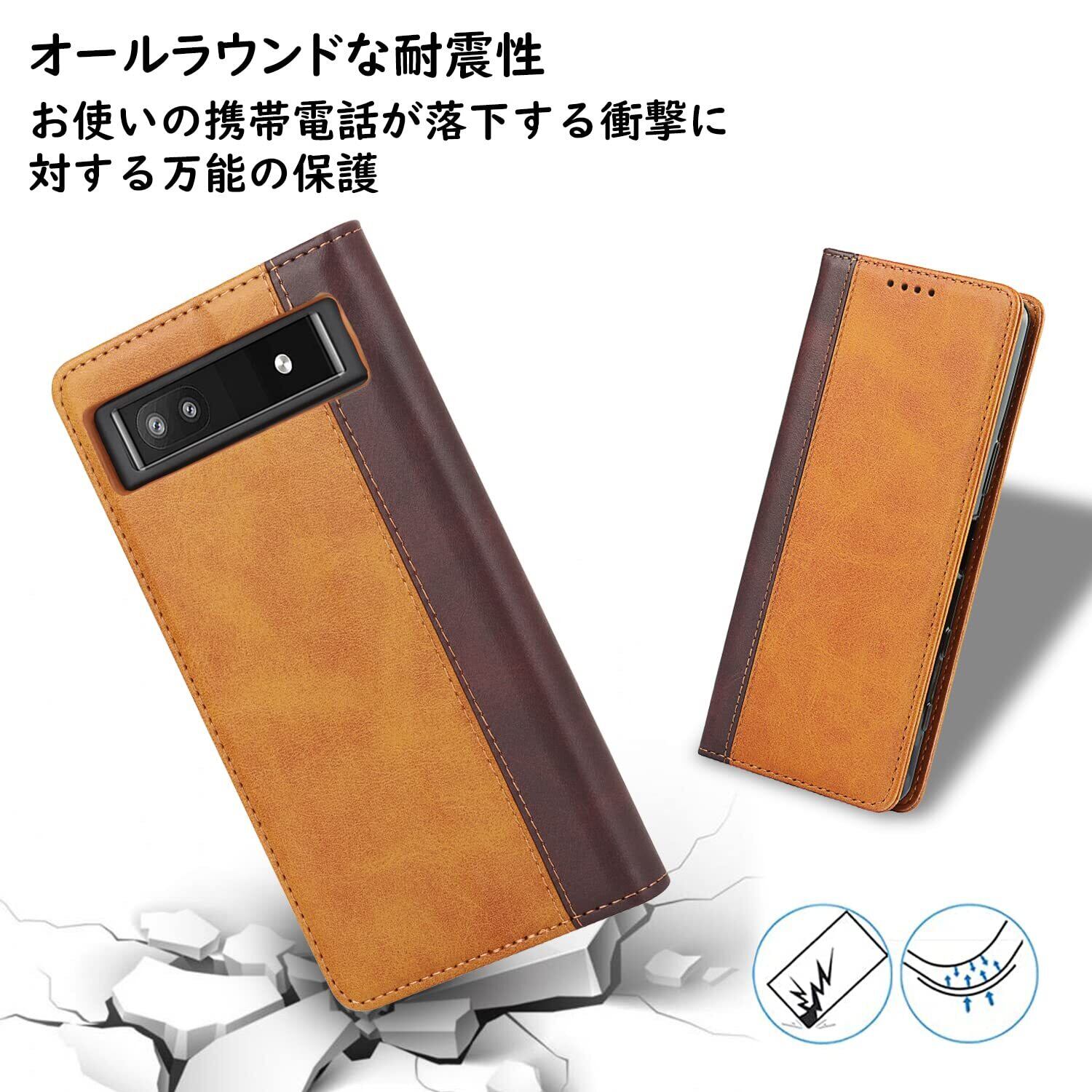 Havaya Pixel 6a ケース グーグルピクセル6a ケース Google Pixel 6a ケース 手帳型 au カバー docomo 耐衝撃 softbank カード収納 スタンド機能 フェイクレザー-イエロー+ブラウン