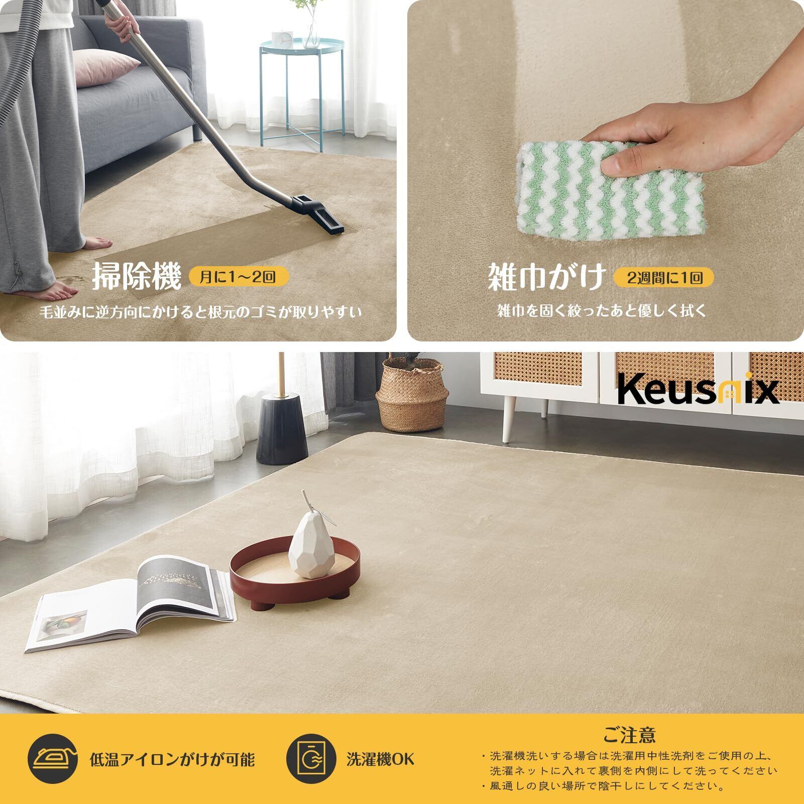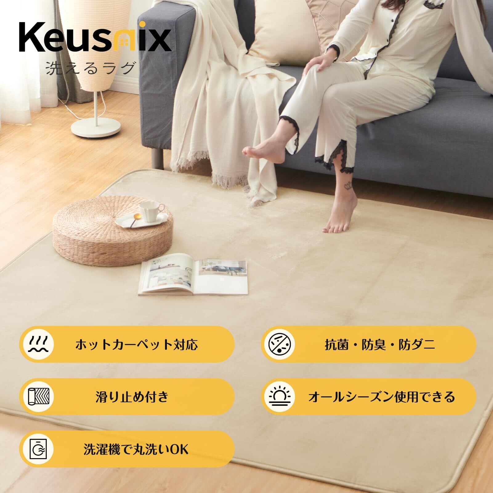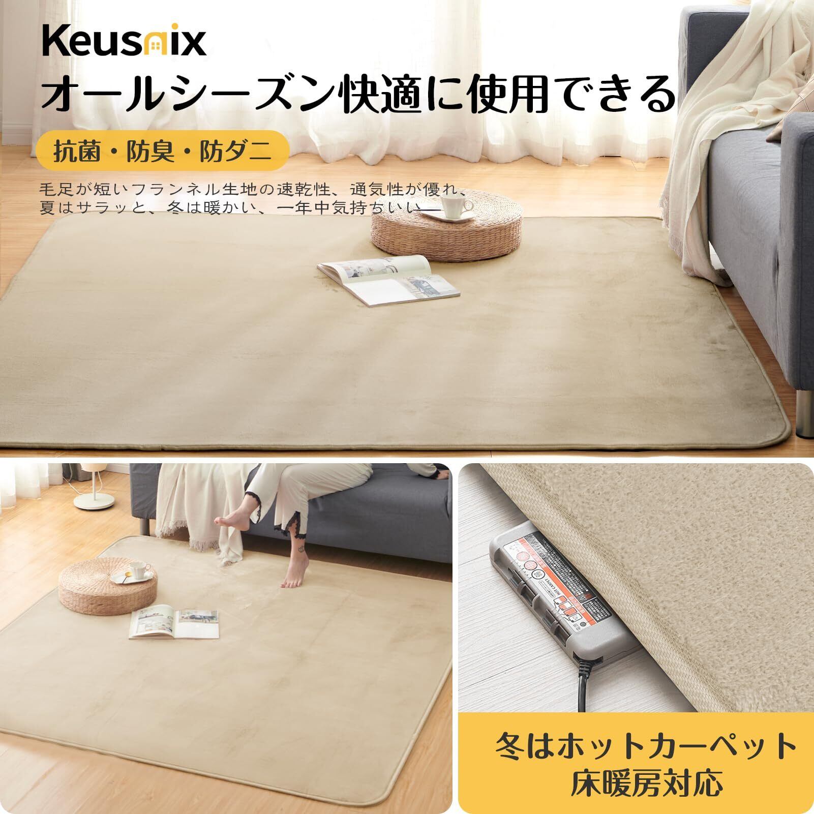 Keusnix カーペット ラグ ラグマット滑り止め付 洗える 135×185cm 約1.5畳 絨毯 防ダニ 抗菌 防臭 オールシーズン快適に使用 床暖房 ホットカーペット対応 ふわふわ肌触り フランネルラグ 無地 ベージュ
