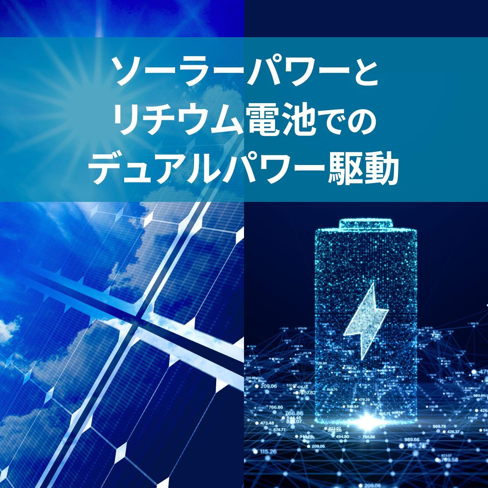 ●光を受けている間はソーラー機能で駆動し、電池を使わない為、経済的なエコモデルです