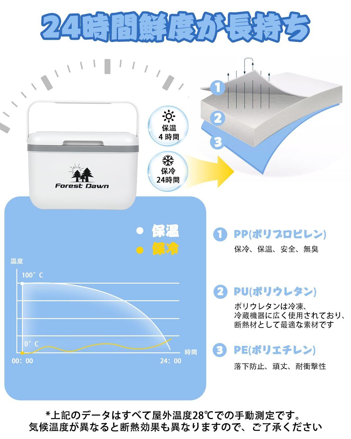 [Forest Dawn] クーラーボックス 保冷ボックス 5L 小型 真空断熱 保温 超軽量 ハードクーラー Cooler Box クーラーbox フィッシングクーラー 釣り キャンプ 部活 お手入れ簡単 キャンプ クーラーボックス キャンプ/釣り/運動会/お花見/部活や買い物等に大活躍