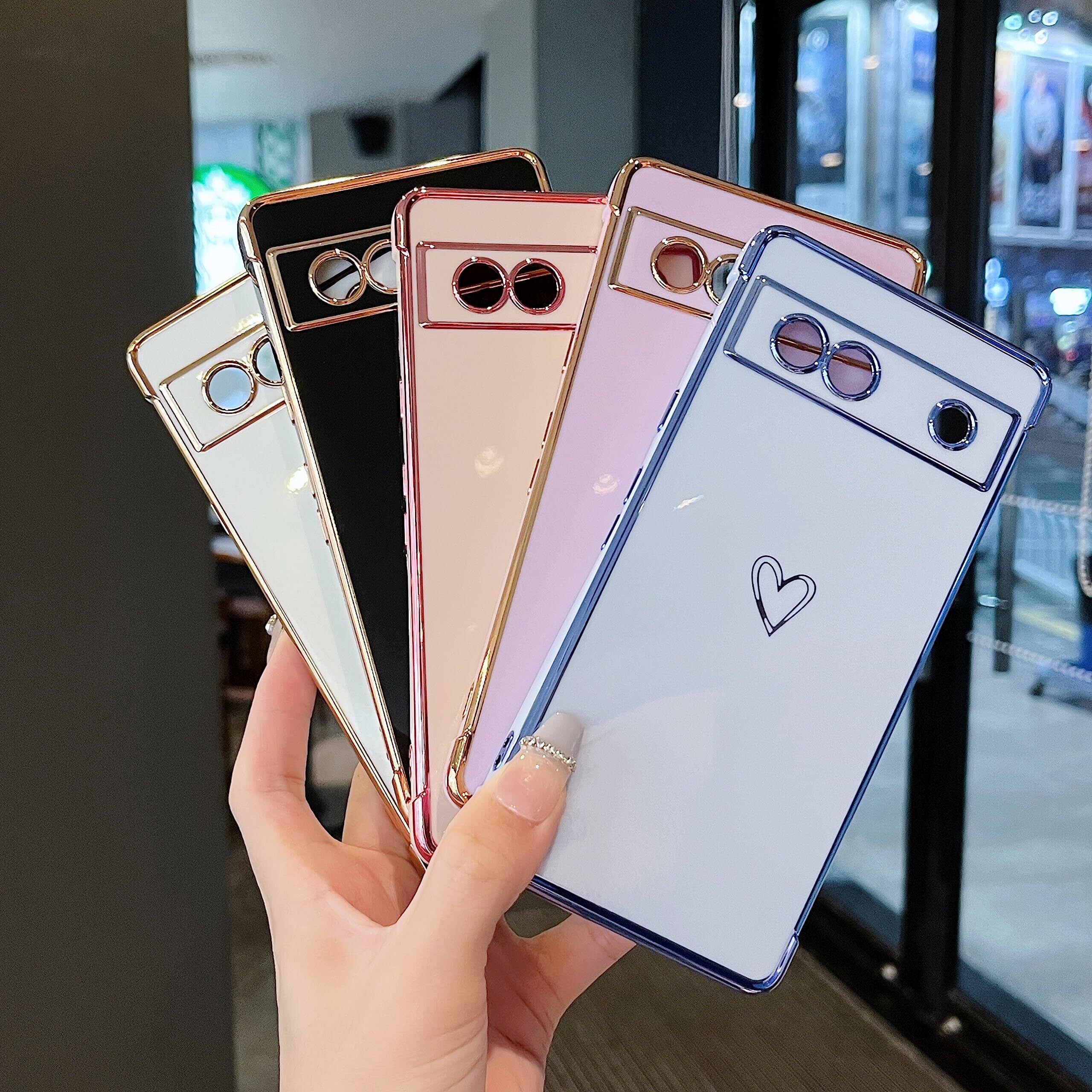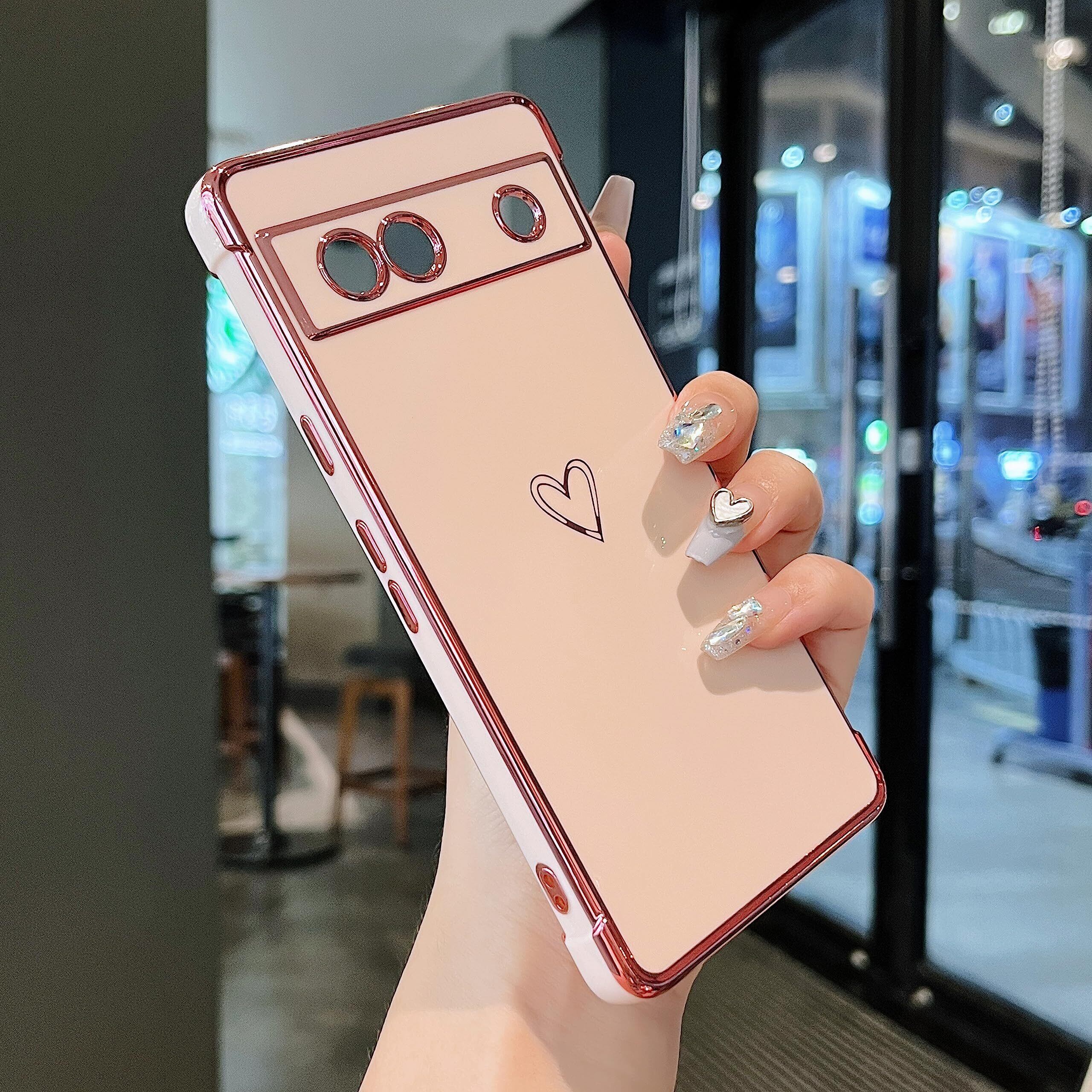 ZTOFERA Google Pixel 7a 用 ハートケース 柔軟な TPU シリコン メッキ加工 ソフト 軽量 耐衝撃 おしゃれ 韓国 可愛い Google Pixel 7A ケース 携帯カバー 女性 心パターン スマホケース ワイヤレス充電対応 (ピンク)