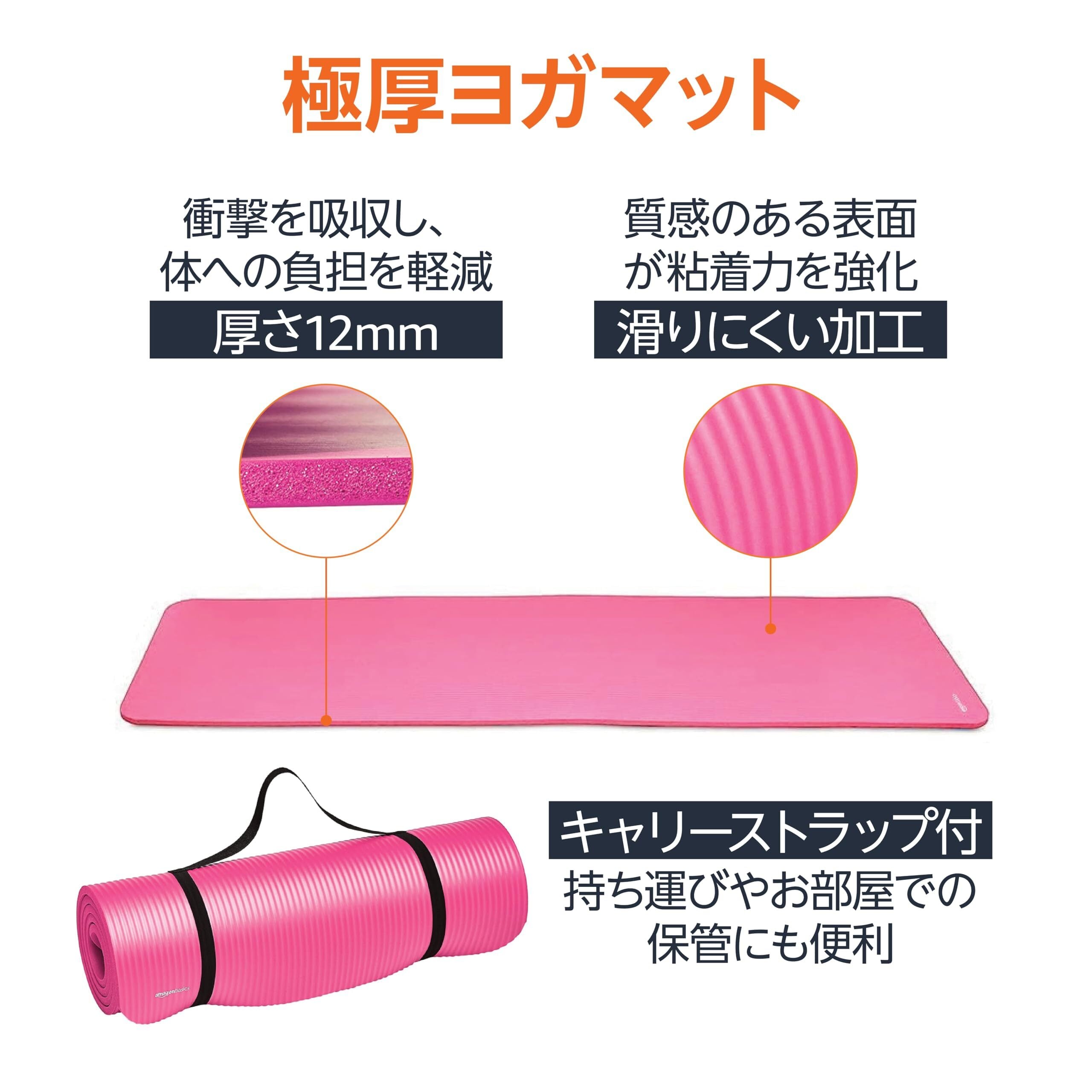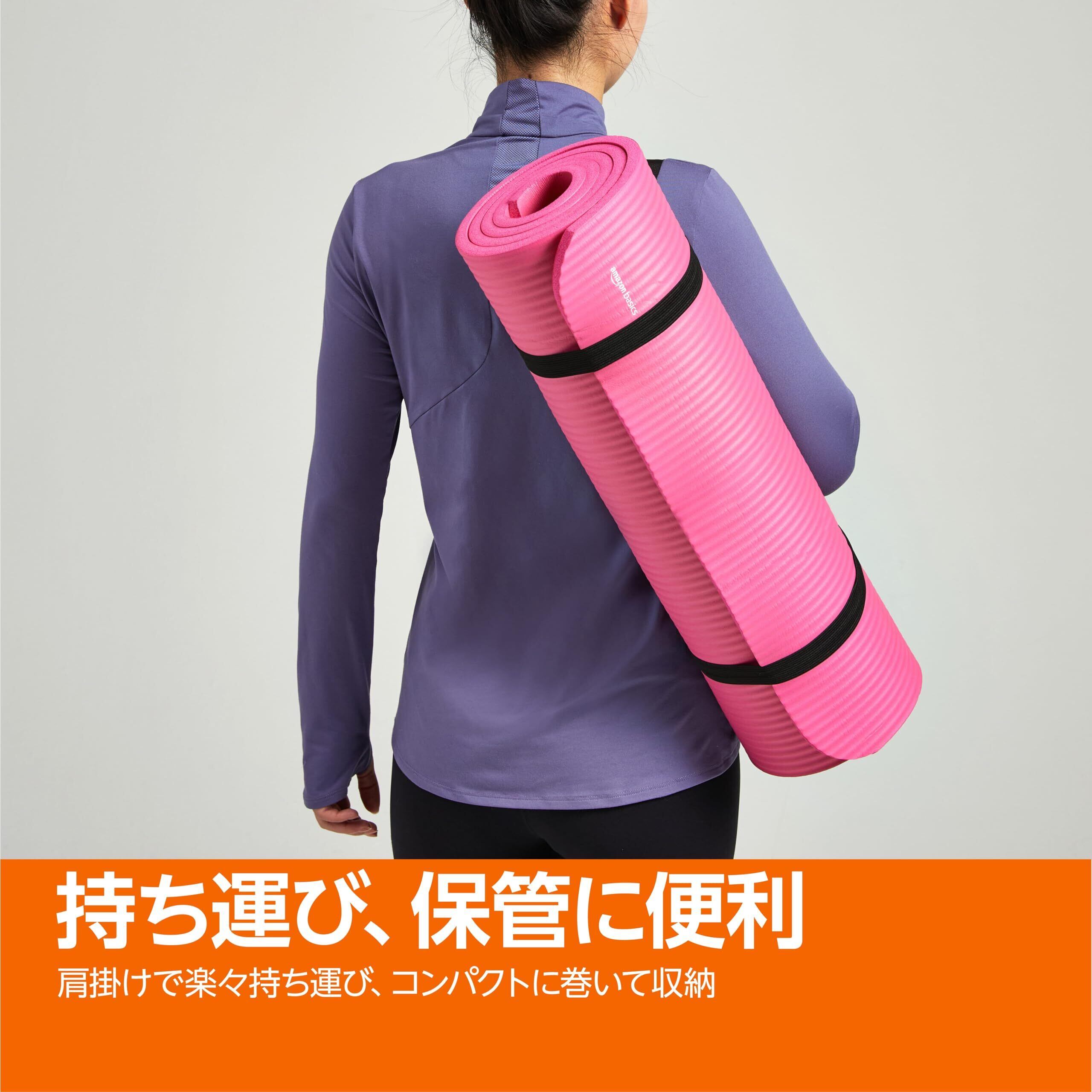 Amazonベーシック ヨガマット 厚め 12mm キャリーストラップ付 トレーニングマット ストレッチマット ピラティスマット 188×61×1cm