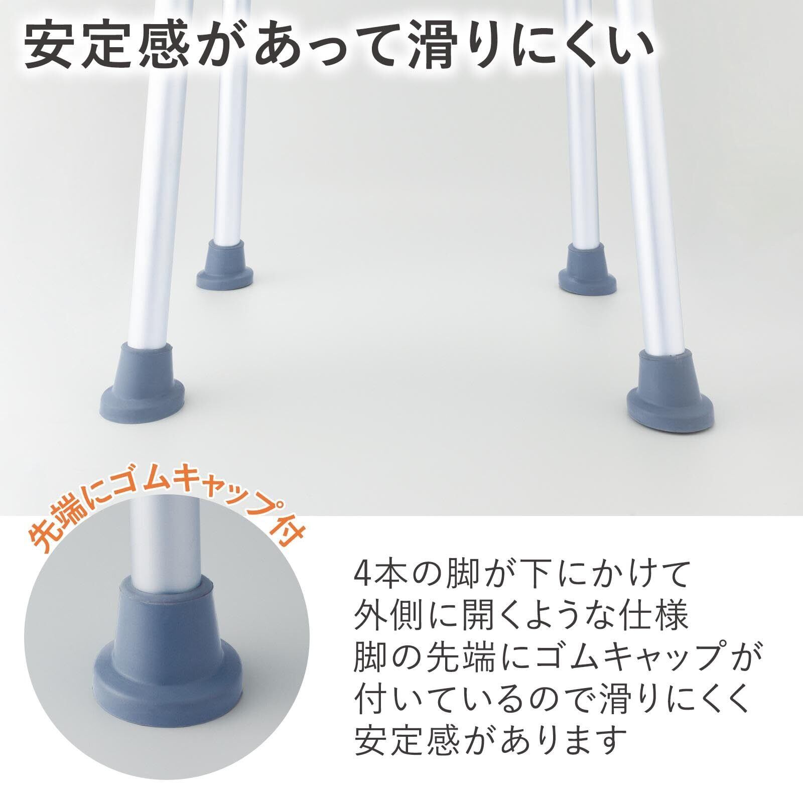 脚の先端はキャップ付きで滑りにくい。