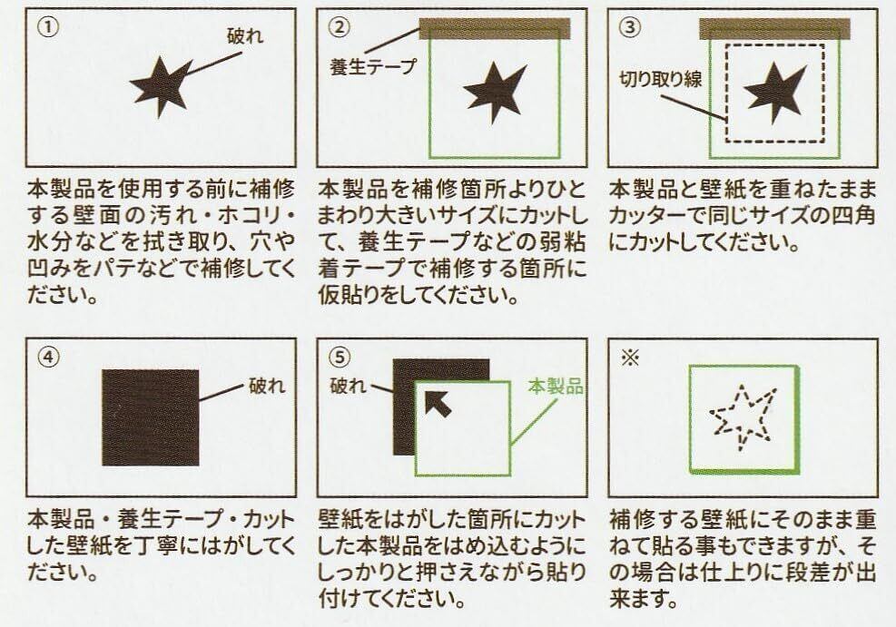 補修用壁紙シールです。 必要サイズにカットして、補修する部分に貼り付けます。 ノリ不要のシールタイプでピタッと貼るだけ簡単です。 壁紙の汚れや破れの補修にお使いください。 ※布壁紙・土壁・天井・浴室・屋外等には使用できません