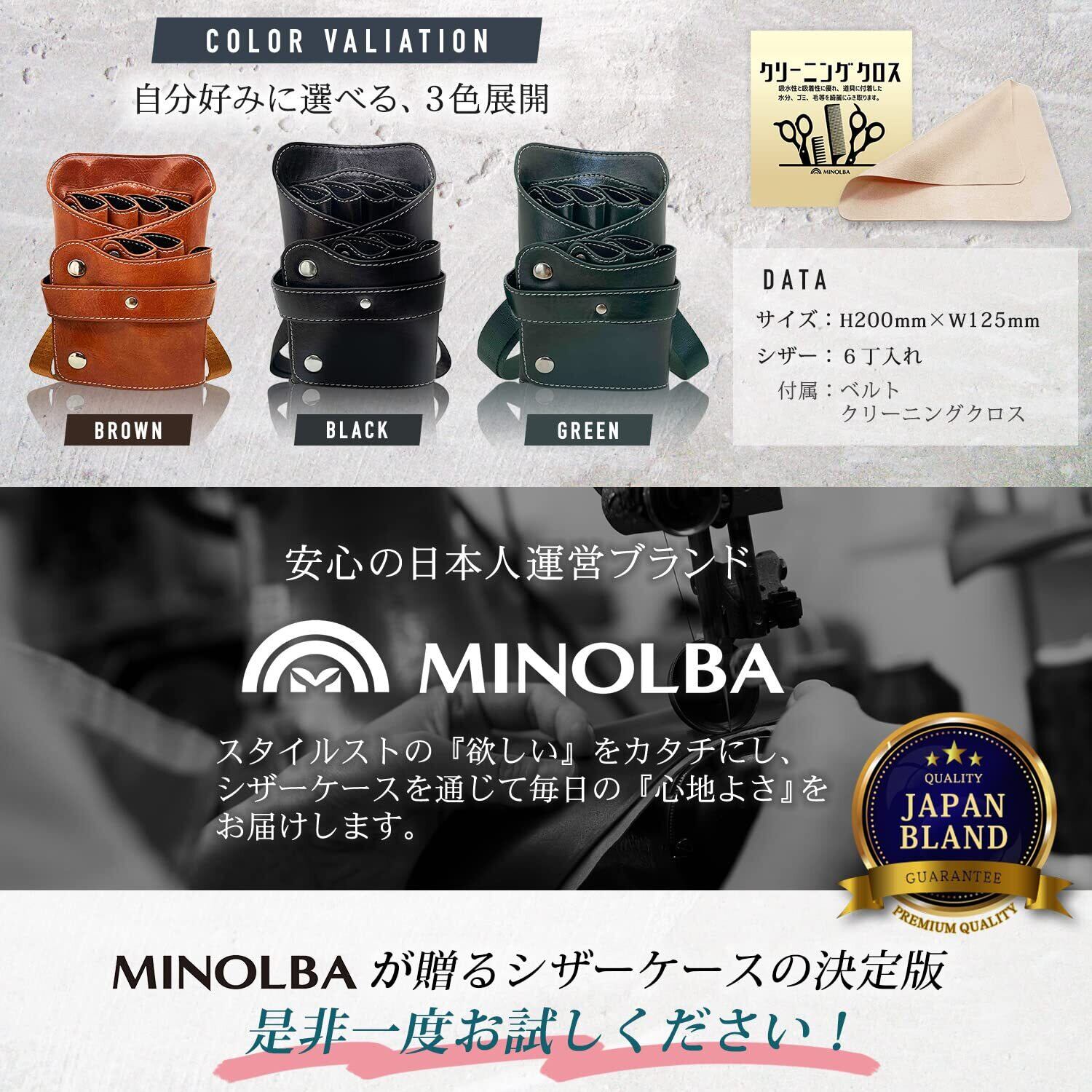 シザーケース 美容師 6丁収納 腰掛け 肩掛け 軽量 お手入れ簡単 クロス付き シザーバッグ 理容師 トリマー スタイリスト プロ仕様 MINOLBA (Black)