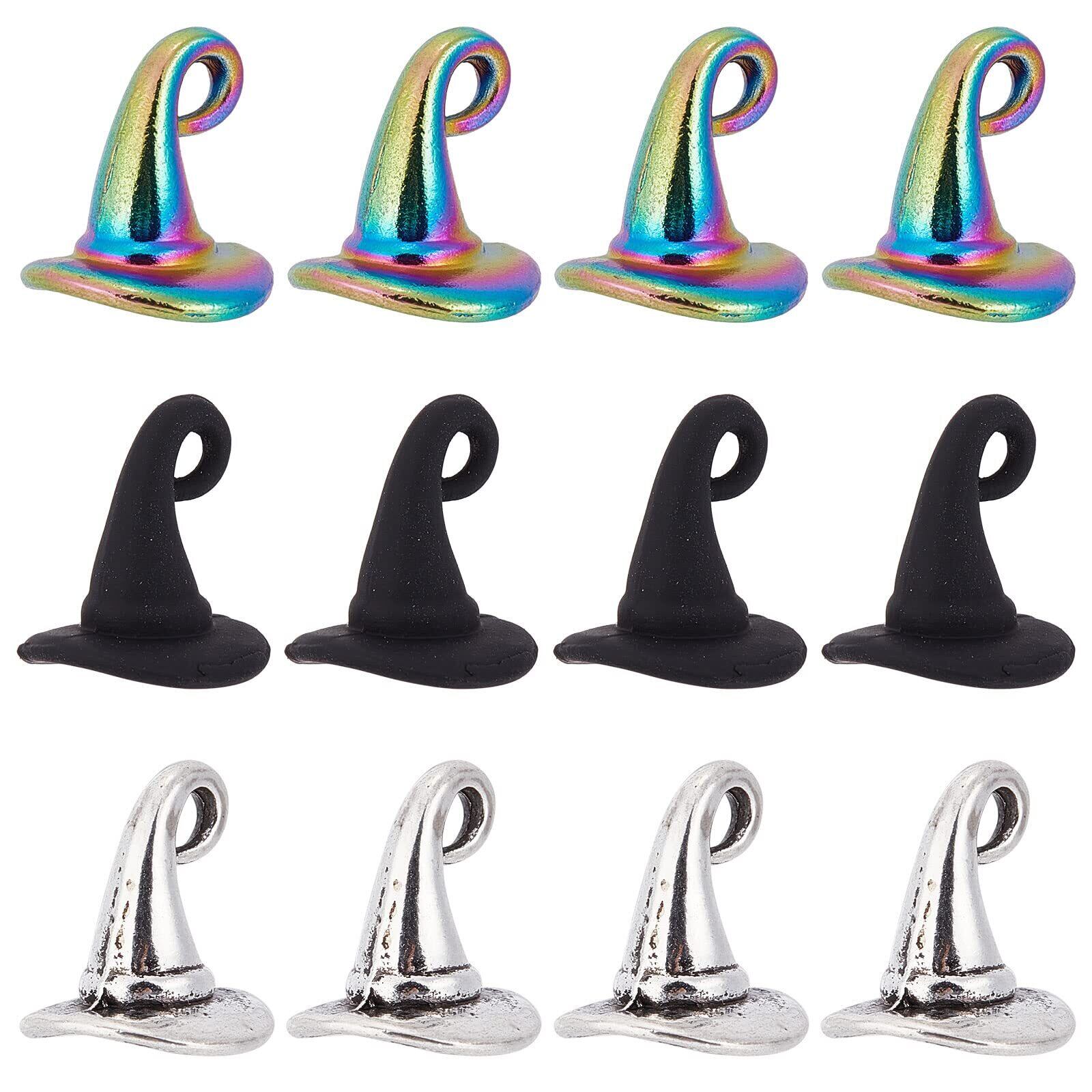 3 スタイルウィザードハットチャーム: ゴシックスタイルの黒い帽子チャーム。 エレガントなスタイルのシルバーハットチャーム, クールなスタイルのレインボーハットチャーム, さまざまなスタイルにより、DIYの選択肢が増え、さまざまなスタイルの魔法のお守りを体験できます.
