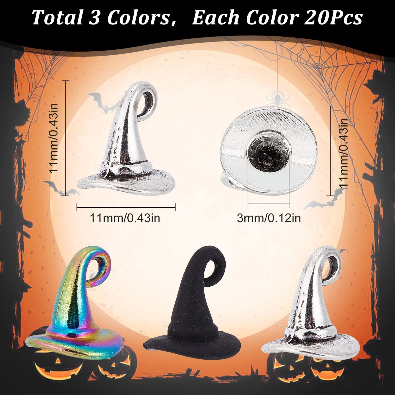 SUNNYCLUE 60個3色 ハロウィン チャーム 合金 魔女 帽子 チャーム 帽子 チャーム 魔法 パーツ 魔女 ピアス 魔女の帽子 イヤリング 魔法使いの帽子 ネックレス 魔法使い ブレスレット キーホルダー クリスマス メタルパーツ 暗黒風 チベットスタイル ヴィンテージ 銀古美 シルバー色 黒色 レトロ風 アンチック 幽霊 合金チャーム チャームパーツ アクセサリー 基礎パーツ ジュエリー作り レディース デコキット クラフト手芸 手作りハンドメイド キット DIY飾り物