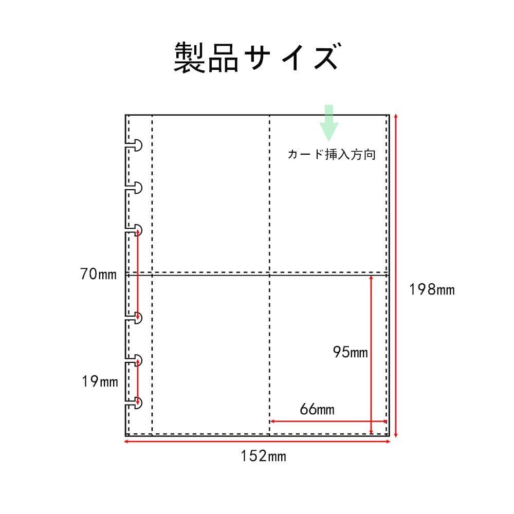 1.入り数 30枚 とじ穴数 6穴 カードページ全体サイズ:15.2cm×19.8cm、単一グリッドサイズ6.4cm×9.2cm