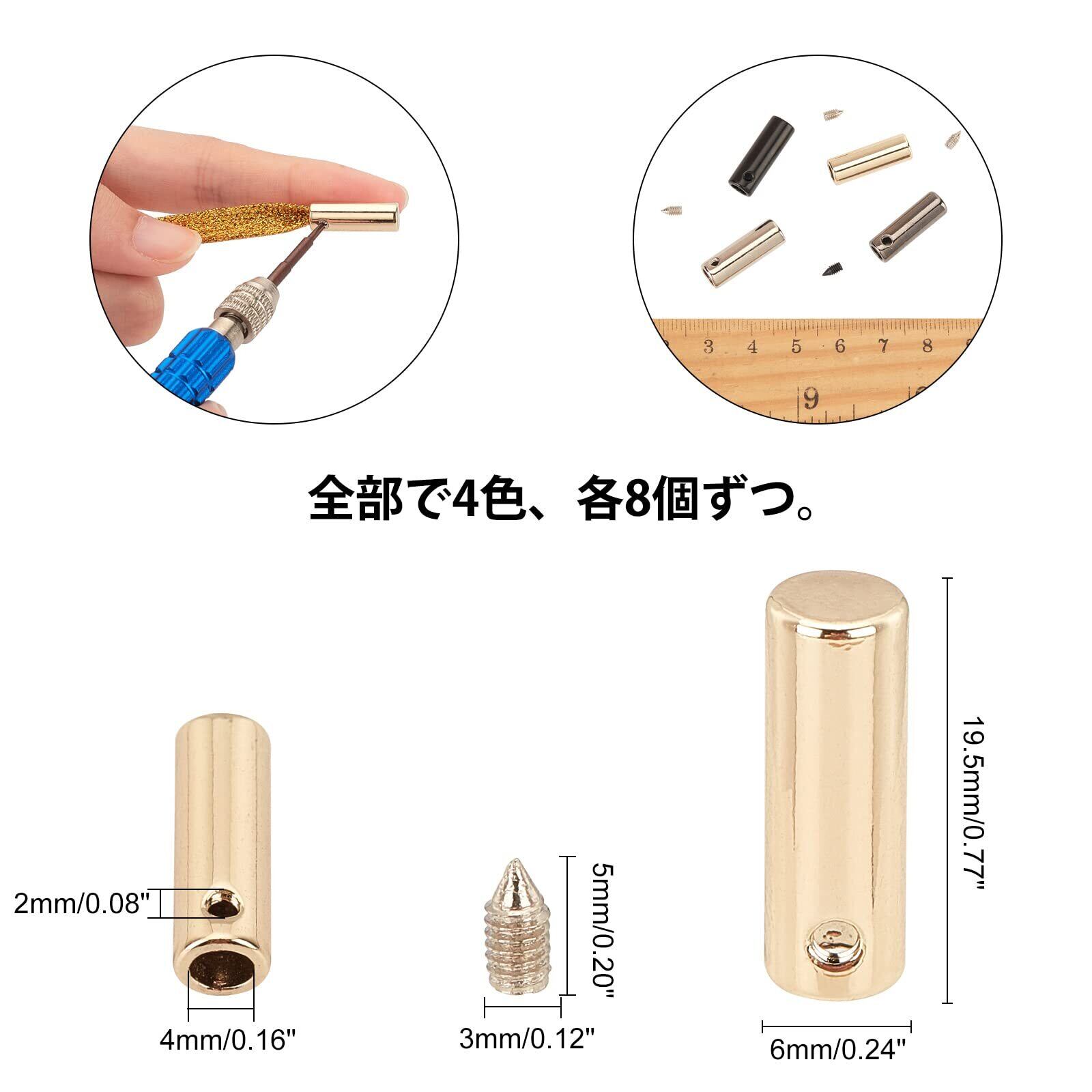 靴紐アグレットサイズ:長さ約19.5mm、直径6mm、内径4mm、穴:2mm; ネジ:5x3mm。靴紐とあなたの靴を違うものにしてください。