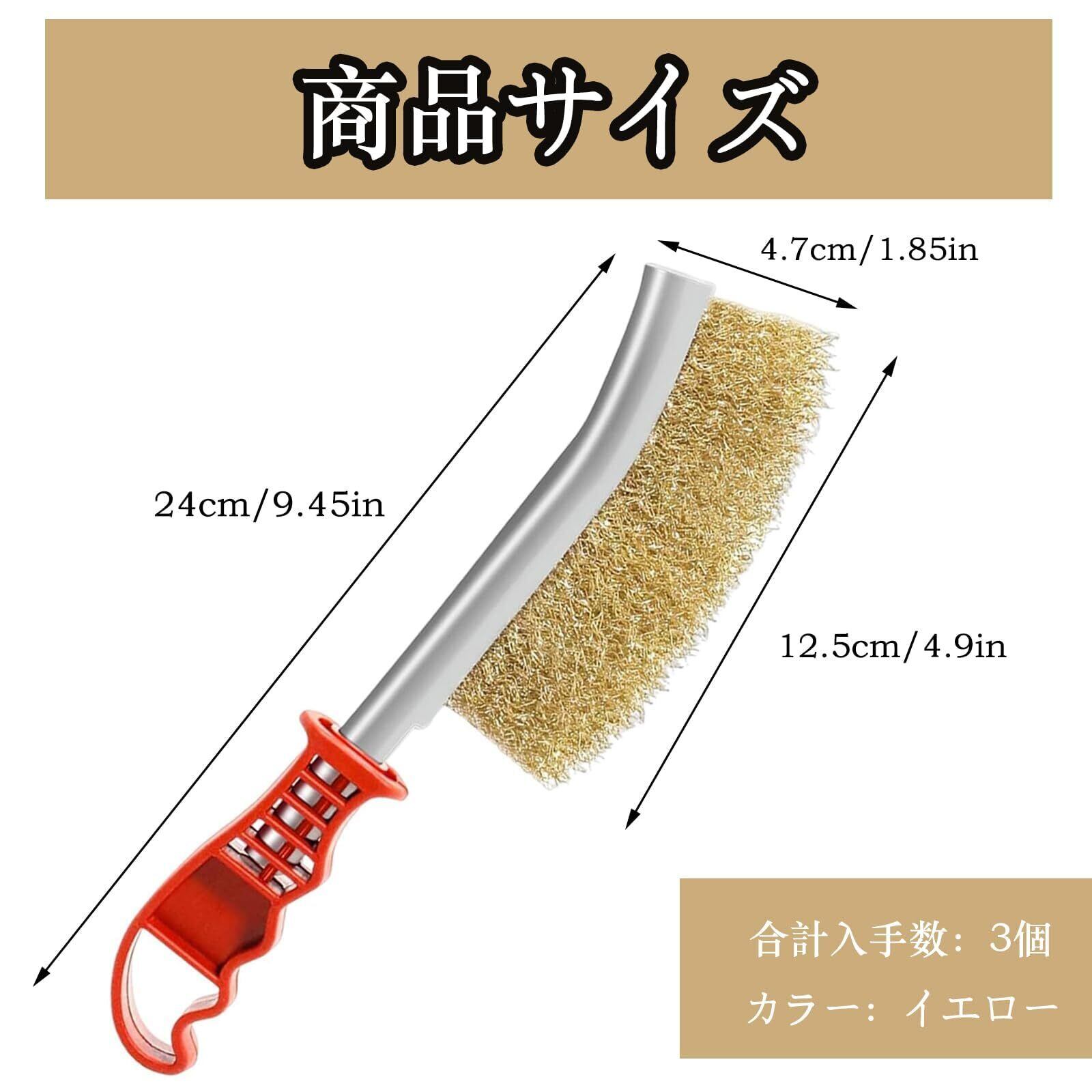 3本 真鍮ブラシ ワイヤーブラシ 24*4.7cm 雑草ブラシ チェーンブラシ チャンネルブラシ 自転車 サビ落とし 草取り道具 塗装剥が サビ取り 研磨作業 清掃 園芸用品(イエロー)。【真鍮ブラシサイズ】ワイヤーブラシ 真鍮×3本、長さ24cm*幅4.7cm、チャンネルブラシの毛の長さ12.5cm。真鍮ブラシ頑固な汚徹底的に除去するだけでなく、表面を傷つけることなくお手持ちのアイテムを保護します,自転車 サビ落とし密度の高い毛先は、さまざまな表面を深くクリーニングし、アイテムを輝かせます。 【高品質素材】真鍮ブラシ真鍮鋼線。色:イエロー。ワイヤーブラシは汚れをきれいに落とし、錆を落とし、雑草を取り除く。チャンネルブラシ優れたステンレス鋼の材質で、ワイヤブラシの毛がより密集しており、硬度がよく、変形しにくく、丈夫で長持ちします。【ハンドルデザイン】このワイヤーブラシは、人間工学に基づいたハンドルデザインで、握りやすく滑りにくい特徴があります。真鍮ブラシ耐久性のある素材で作られたハンドルは、長時間の掃除や頻繁な使用でも快適な使用感を提供します。【高効率】ワイヤーブラシはアーク構造を採用し、力を入れやすく、プラスチックハンドルは全長11.5 cmで、手触りが快適で、長時間の作業でも手の疲労を軽減し、作業効率を向上できます。真鍮ブラシプラスチックハンドルの端には小さな穴があり、ぶら下げることができ、スペースを節約。【サビ落とし、汚れの除去】チャンネルブラシ錆落しや頑固な汚れ狭い箇所、水廻りの作業や工具の汚れ落としに大活躍:蛇口の隙間、浴室のドアの隙間、シャワーの排水口、浴室のタイル、バルコニーコケを。このワイヤーブラシは、自動車産業を含む建築、建設、メンテナンス部門を含むすべての業界で求められている製品です。