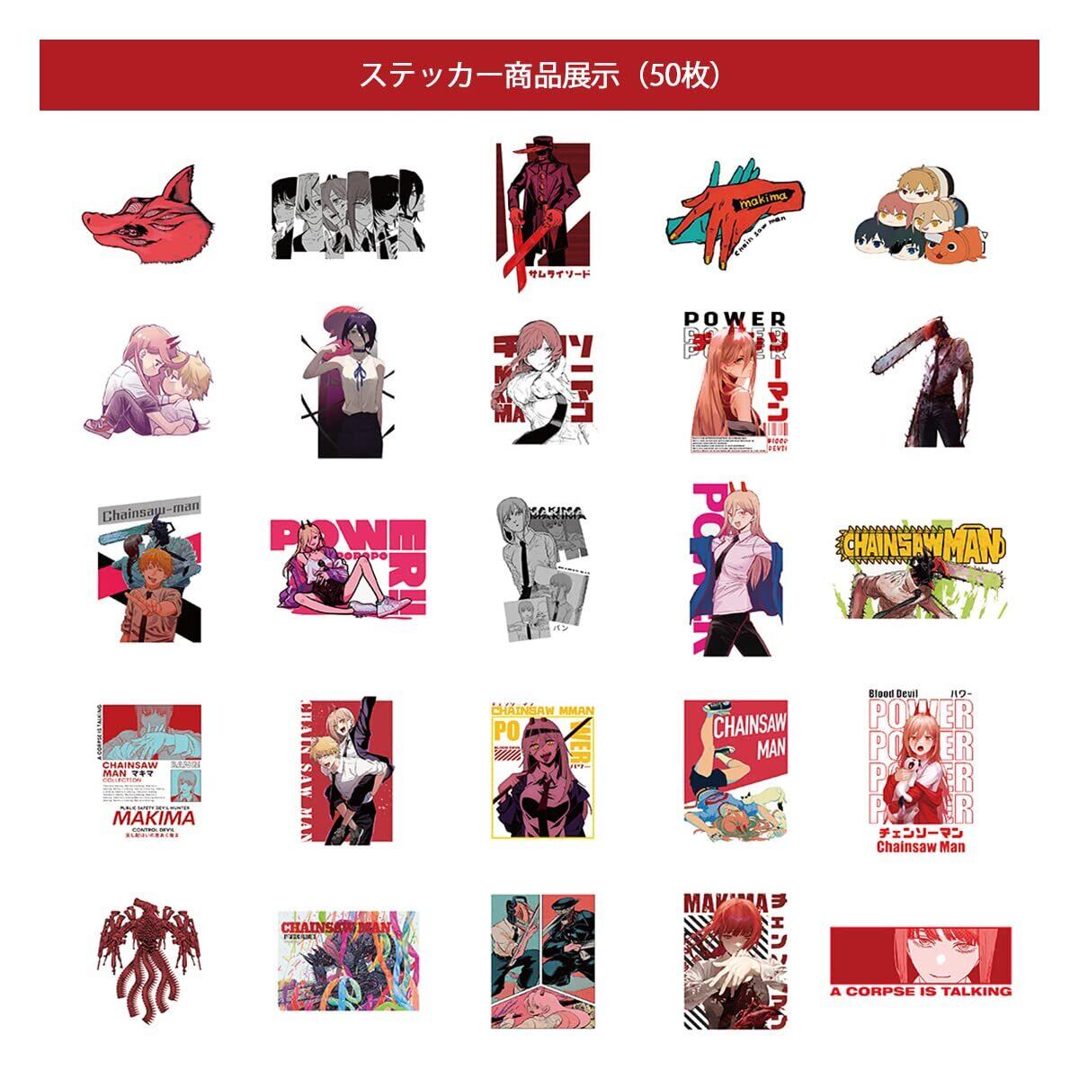 For チェンソーマン ステッカー 50枚セット Q版 防水シールチェンソーマン シール に紙を張る ステッカーパック デカール スーツケース 高精細画像 萌え 車 自転車 バイク ヘルメット パソコン スノーボードに適用 子供 学生 誕生日 プレゼント贈り物