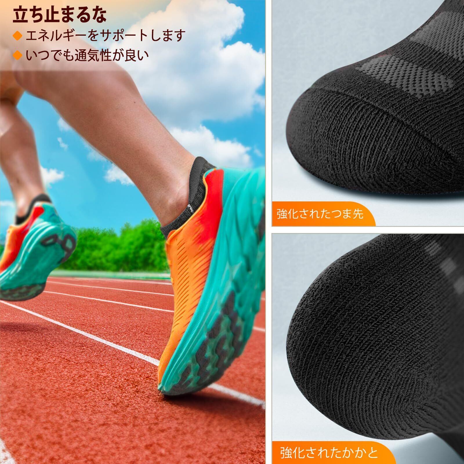 [BULLIANT] メンズ ランニング ソックス 6 ペア、アンクルソックスノーショー通気性吸湿性男性女性用、フルクッションソール