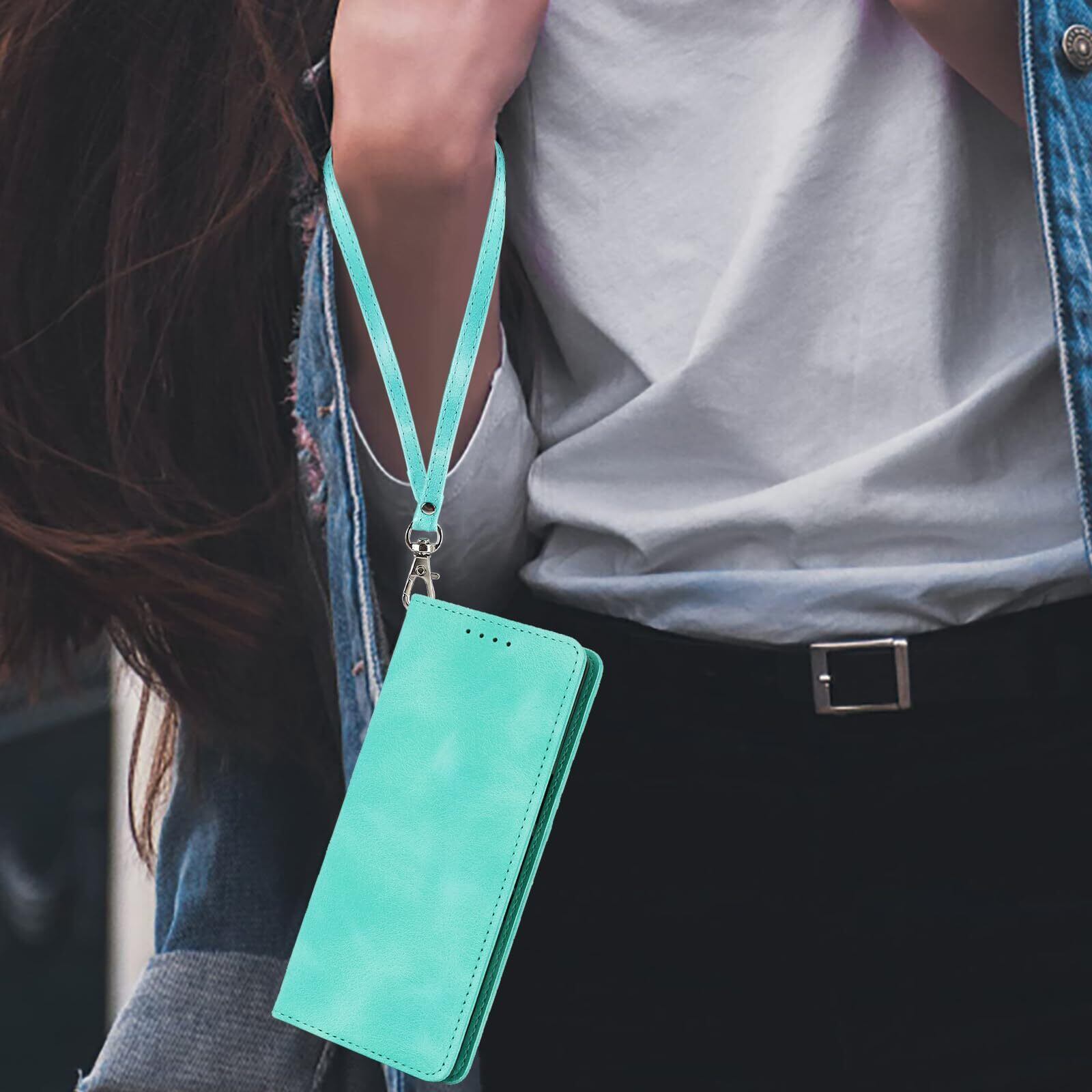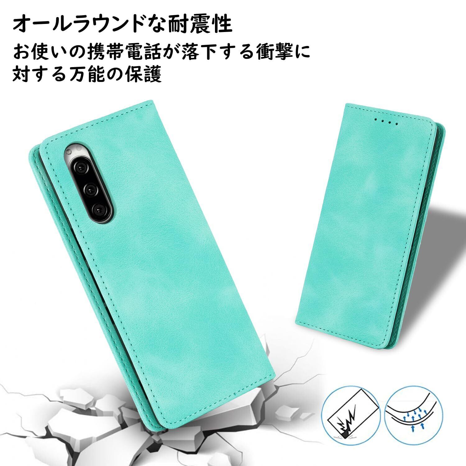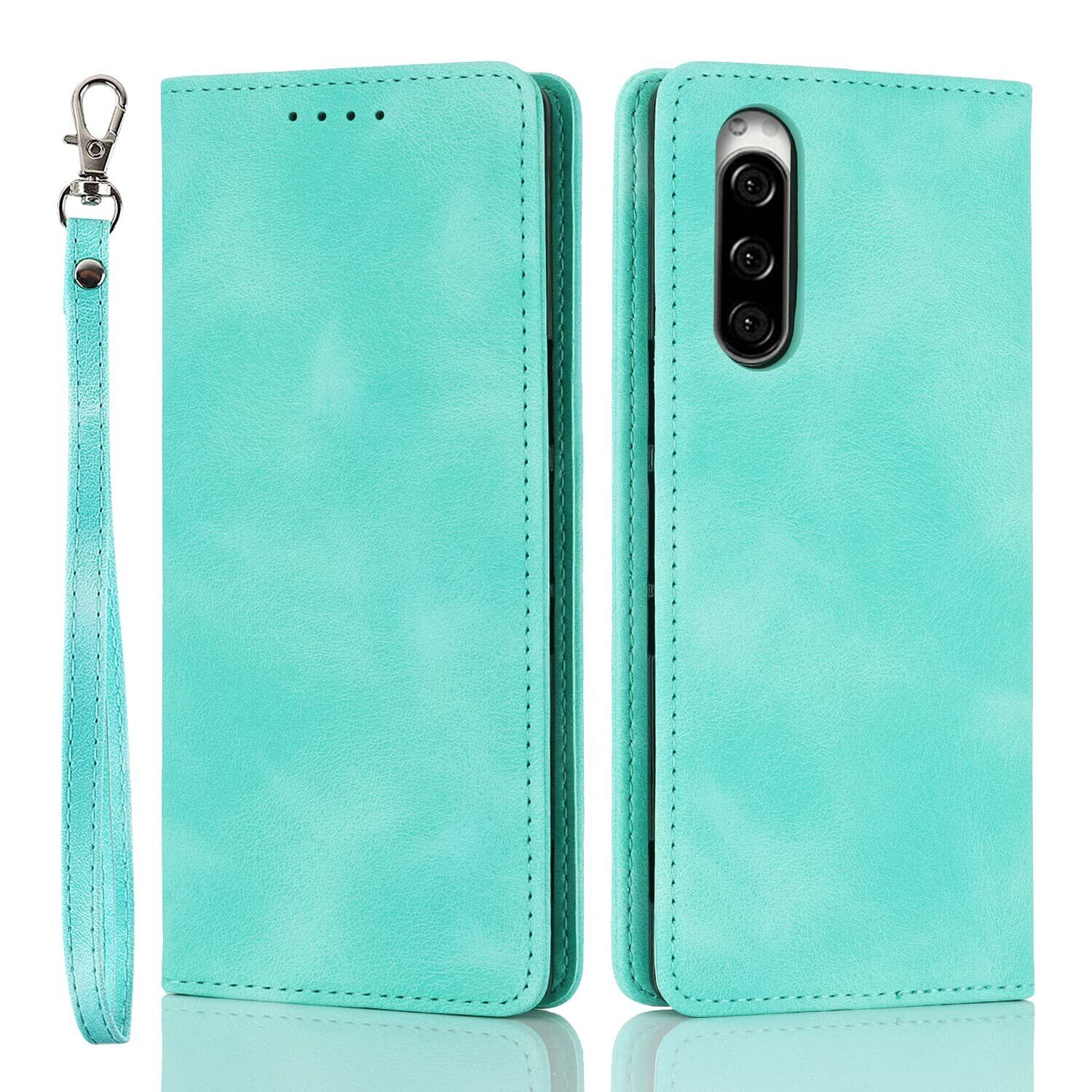 Havaya エクスペリア5 ケース SO-01M ケース SOV41 ケース 手帳型 ストラップ 耐衝撃 901SO softbank SONY ソニー カバー Xperia 2/Xperia XZ5 ドコモ マグネット式 カード収納 レザー スエードの質感-ミントグリーン