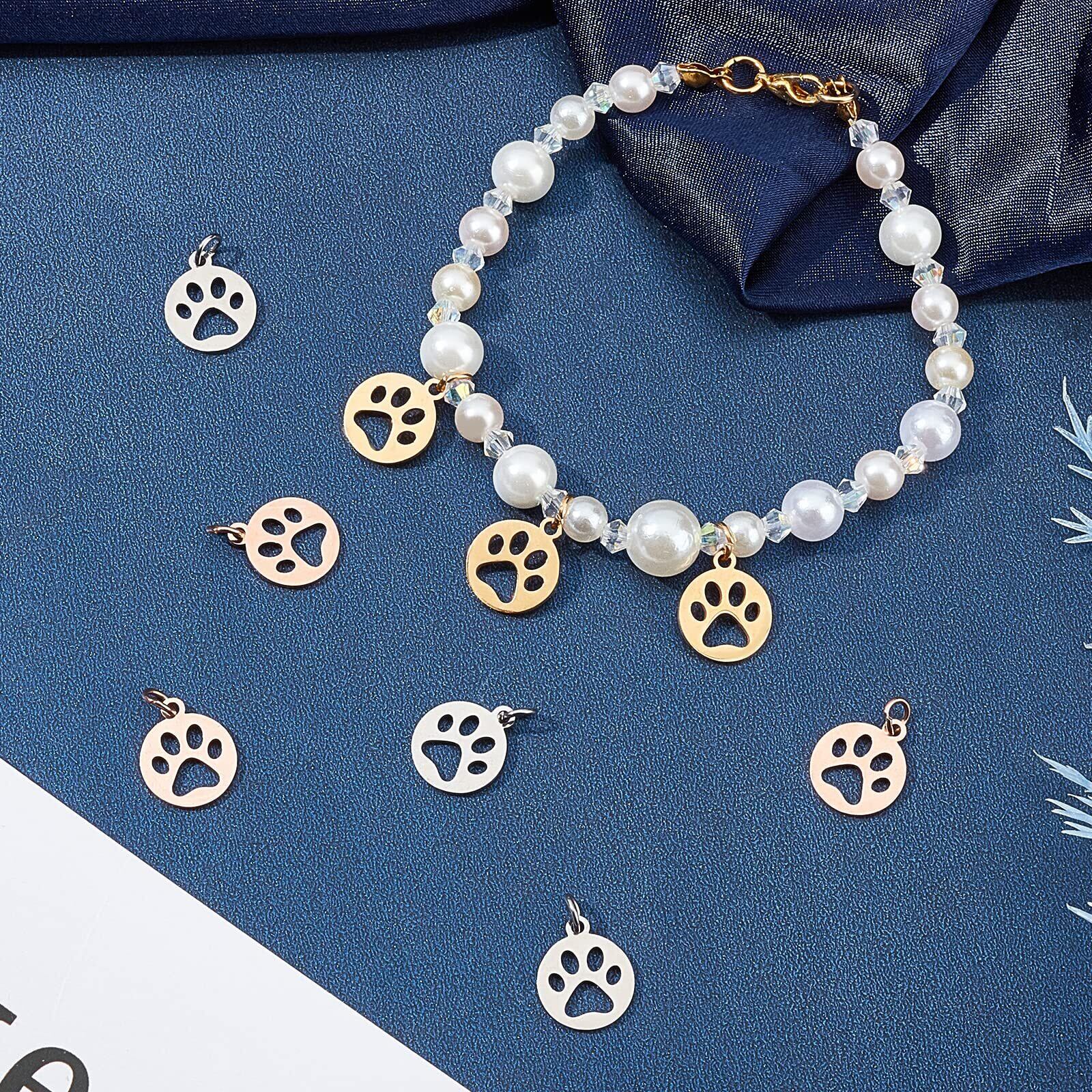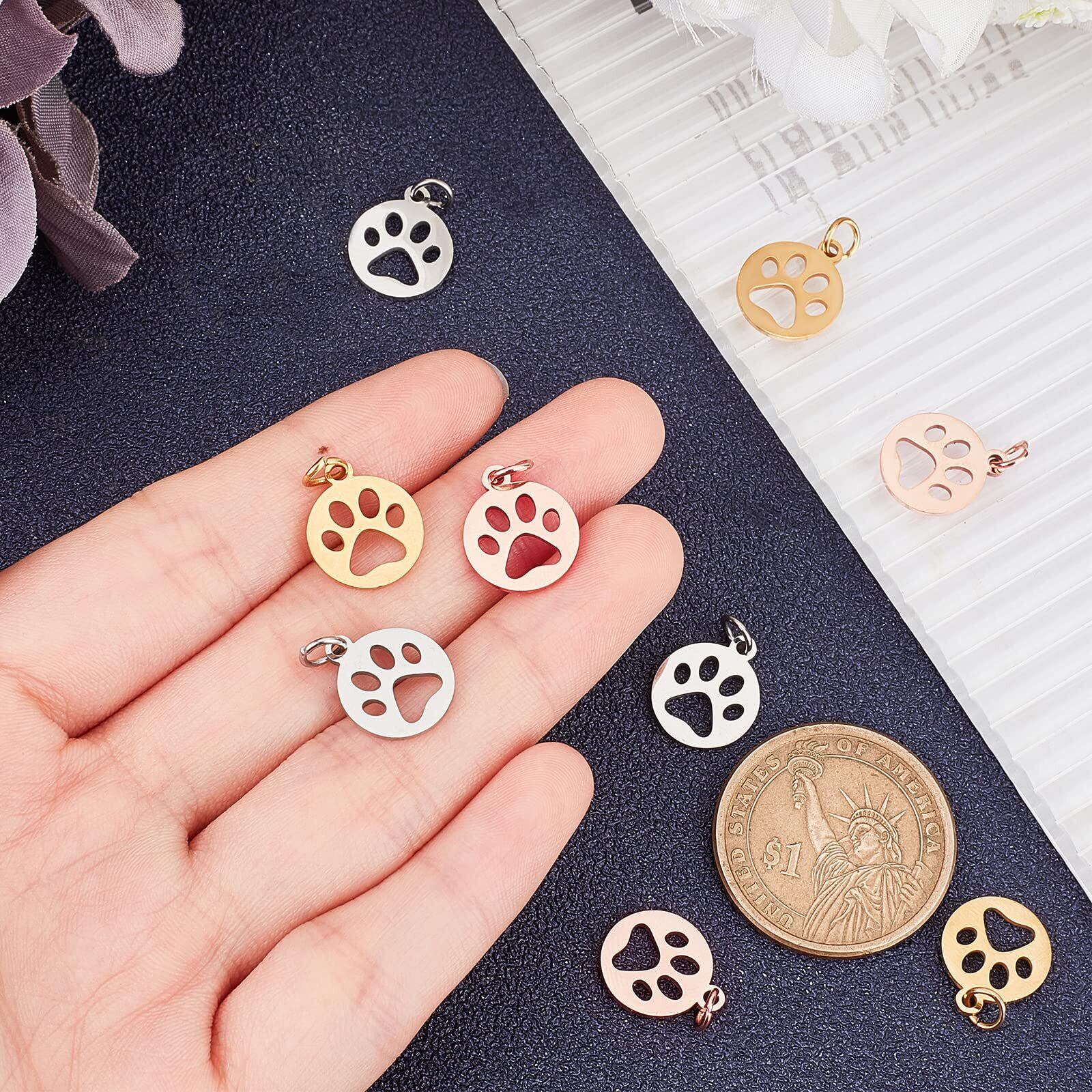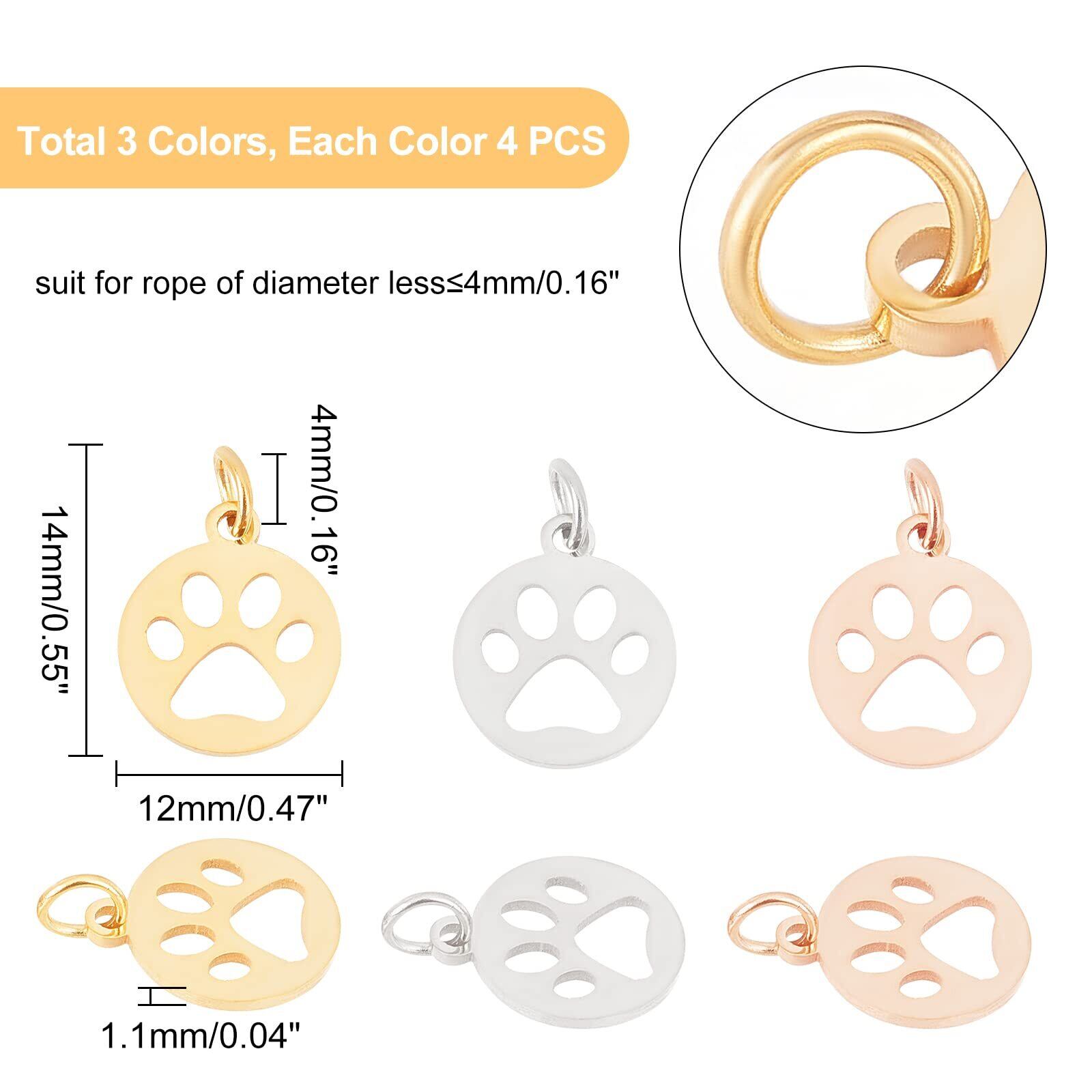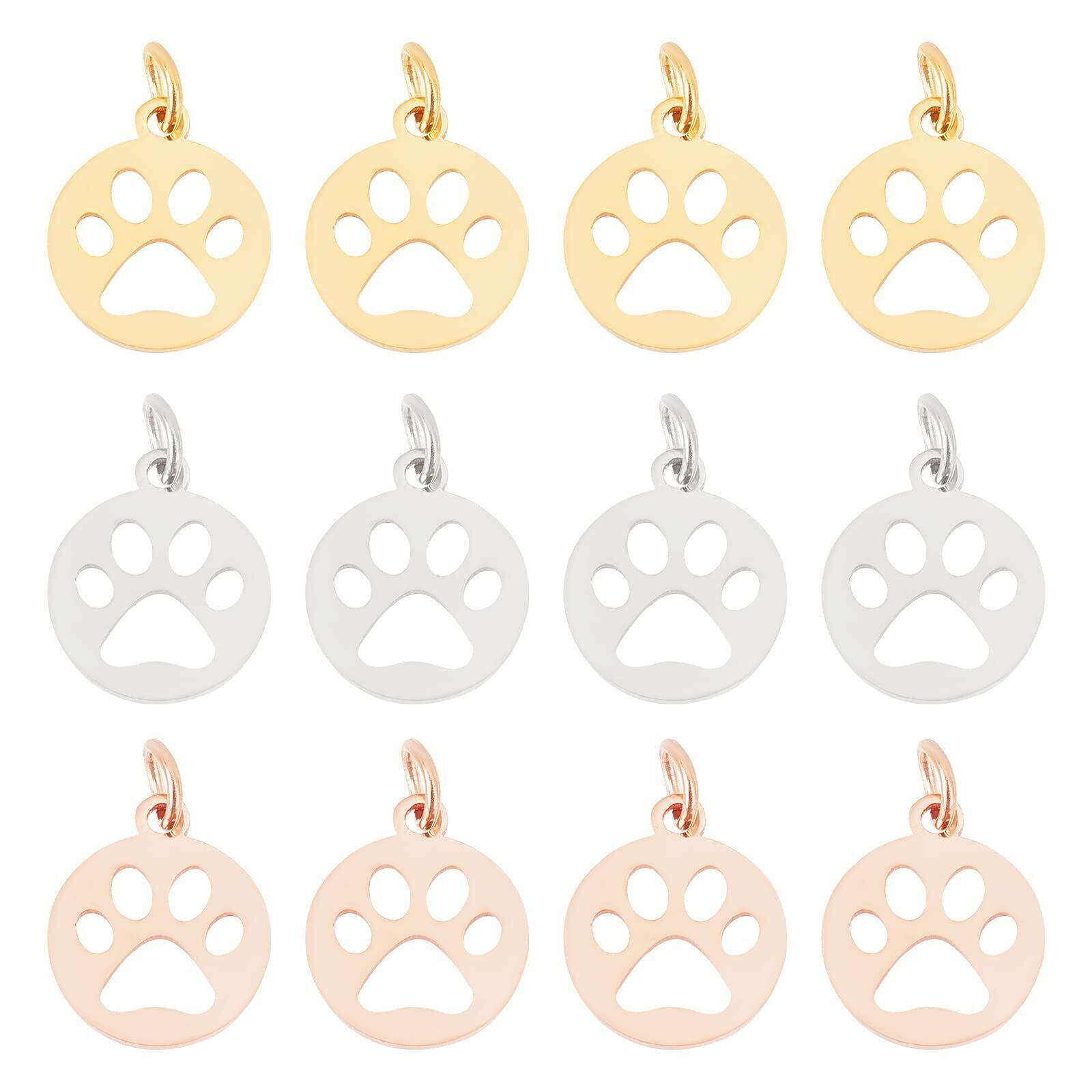[UNICRAFTALE] 12個 3色 犬の足跡 チャーム にくきゅう 動物チャーム 犬ペンダント 304ステンレス鋼 フラットラウンドチャーム 金属チャーム 動物ペンダント メタルチャーム 透かしパーツ ジュエリー作り ネックレスブレスレットパーツ アクセサリーパーツ 手芸 DIY用品
