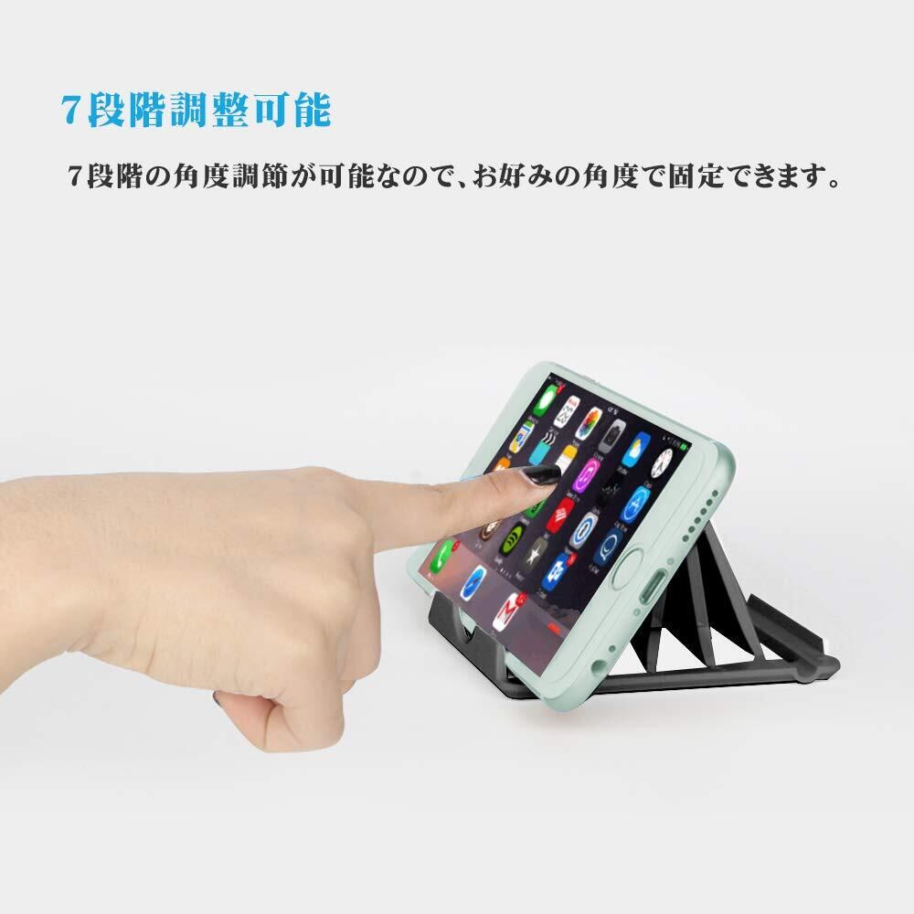 【角度調整可能】 本スマホホルダーは、7段階の角度調整が可能、横置き、縦置きどちらでも使用可能ですから、動画、画像、電子書籍等を快適に楽しめます。