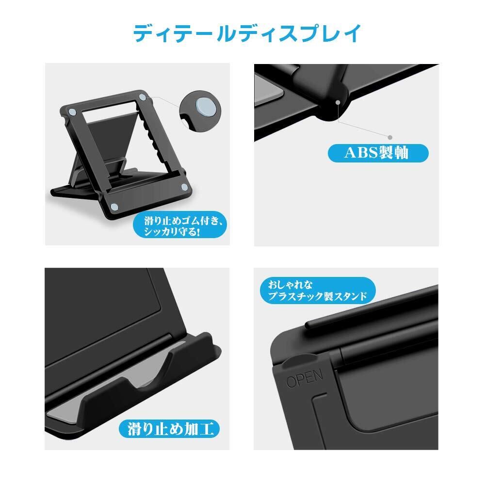 Ewin スマホタブレットスタンド ホルダー ipad/iphone対応 携帯 スマホ スタンド タブレットホルダー スマートフォンスタンド 卓上 折りたたみ 角度調整可能 滑り止め 小型 軽量 収納簡単 ブラック