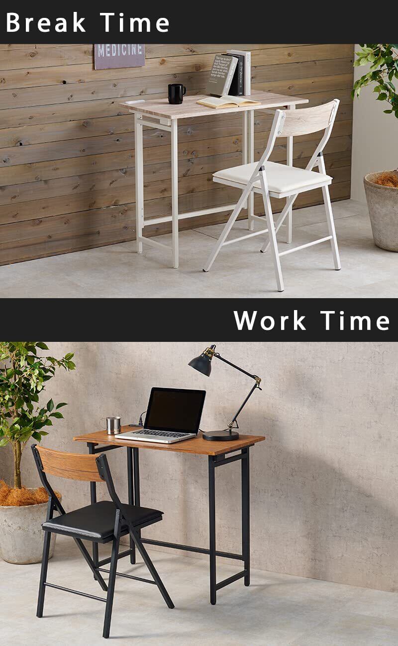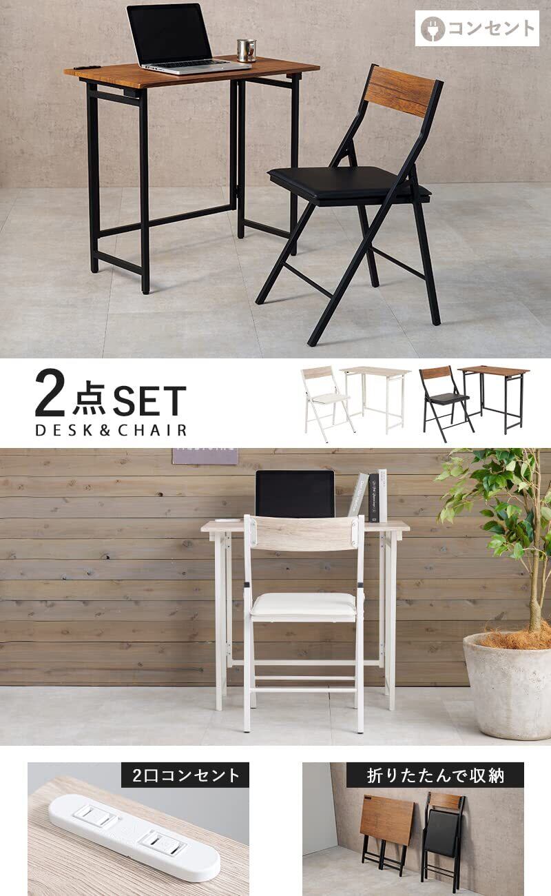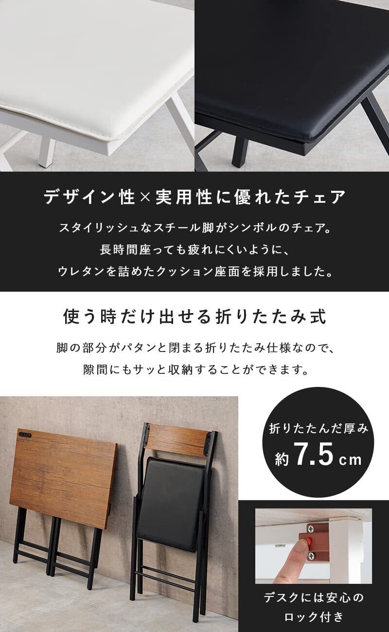 萩原(Hagihara) デスク セット チェア 椅子 折りたたみ 【クッションチェア】 コンセント 付き 1500W 幅80 奥行45 高さ72 勉強机 テレワーク ホワイト LDC-4778WH