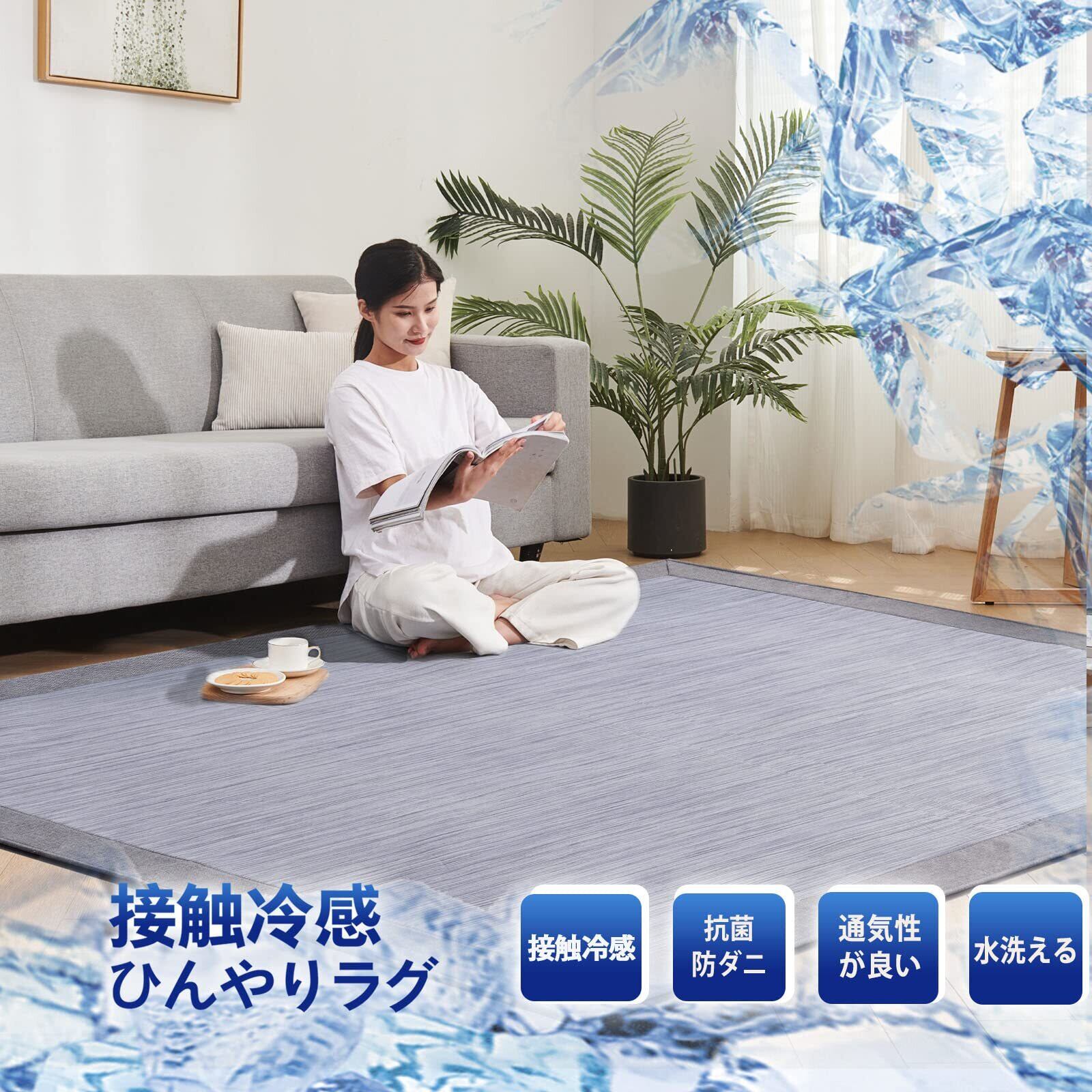 【接触冷感ラグ】この夏用ラグマット3畳は冷却値が0.36、肌に触れるとひんやり、優れた放熱性で、夏場にかかってしまい過ぎるクーラーなどの電気代を抑えてくれる効果も期待できます。