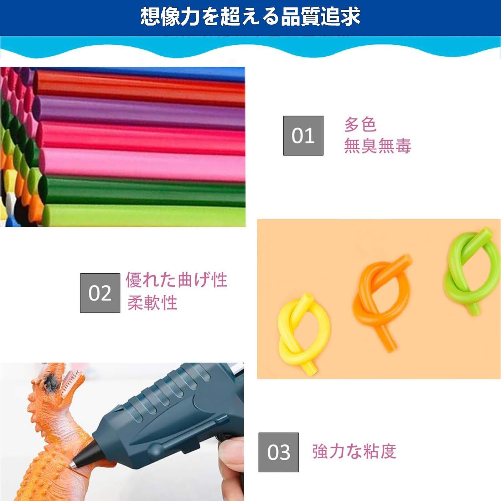 【優れた品質】ホットメルト接着剤は非常に耐久性があり、長期間保存しても硬化しません。また、優れた柔軟性を持ち、ひび割れることはありません(注:製品の品質を保つために、高温や直射日光を避けて保存してください)。