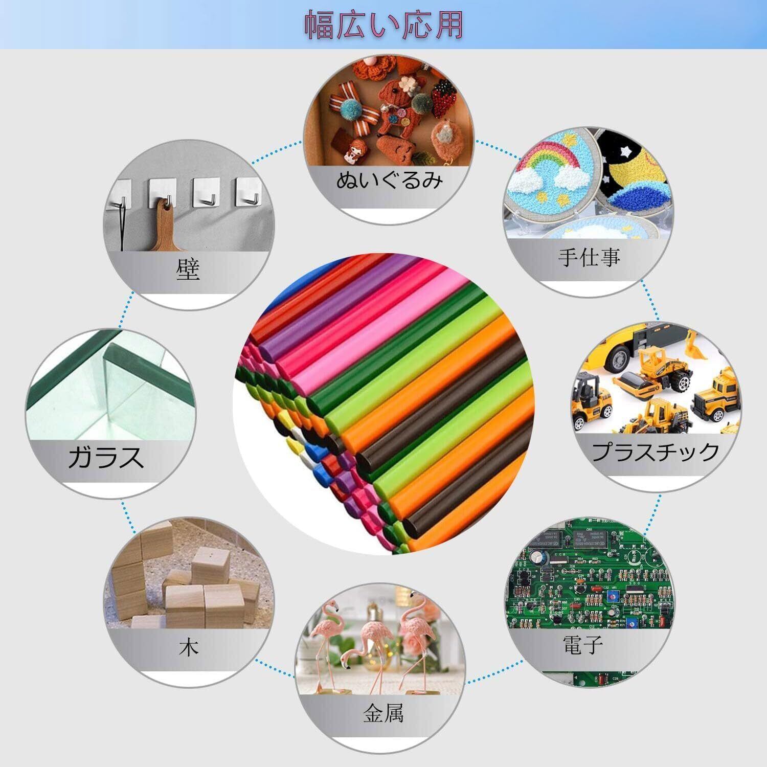【応用範囲】接着剤スティックは、生活の様々な場面で使用できます;玩具の修理、ハンドクラフト、DIYのギフト製作、粘着フックの固定など、幅広く活用できます;好みの色を選べるので、違和感なく使えます。