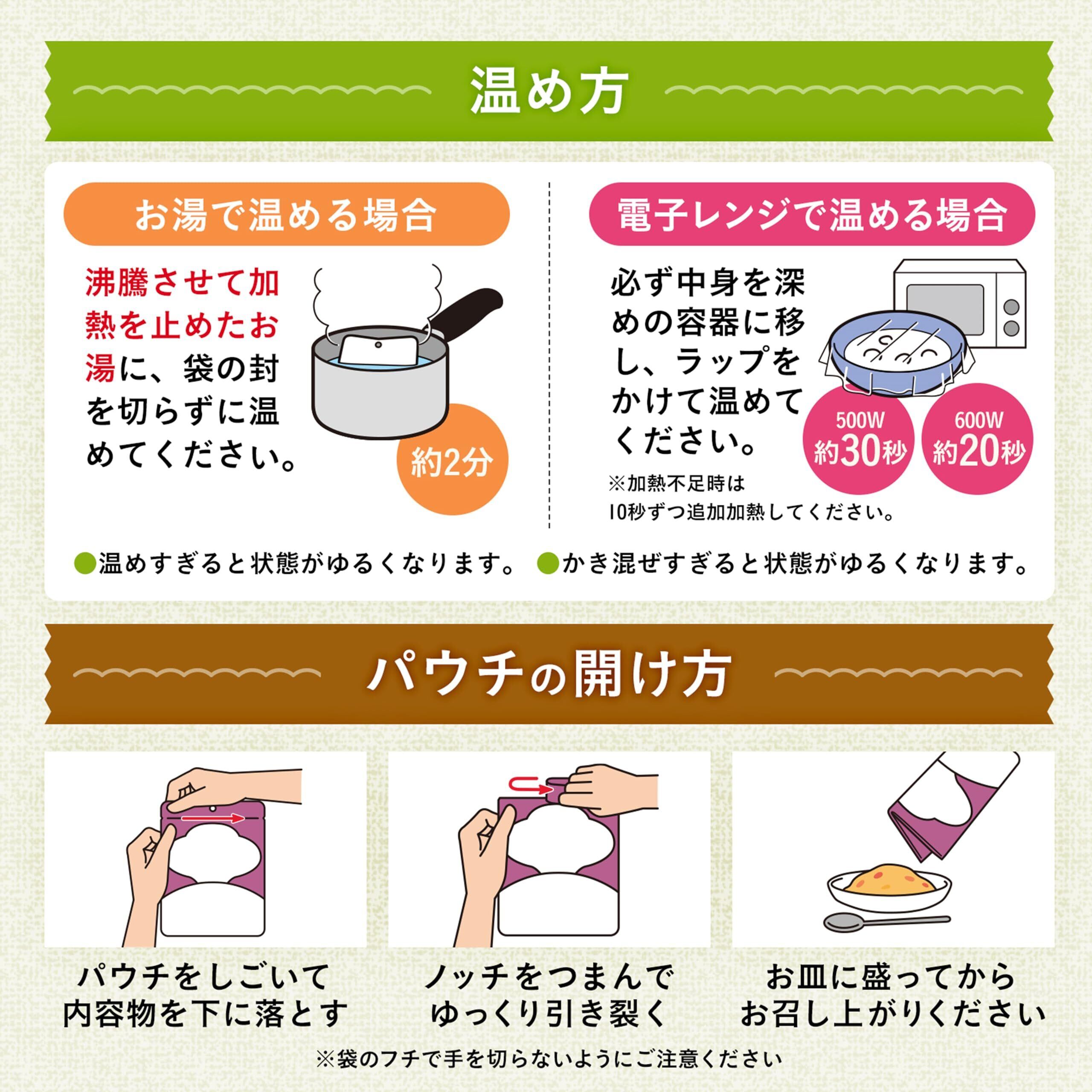 野菜(じゃがいも、たまねぎ、にんじん)、牛肉、しょうゆ、砂糖、でん粉、米発酵調味料、かつお節エキス、植物油脂、ソテーオニオン、こんぶエキスパウダー、ポーク・チキンエキス/調味料(アミノ酸等)、増粘剤(キサンタンガム)、(一部に小麦・牛肉・大豆・鶏肉・豚肉を含む)