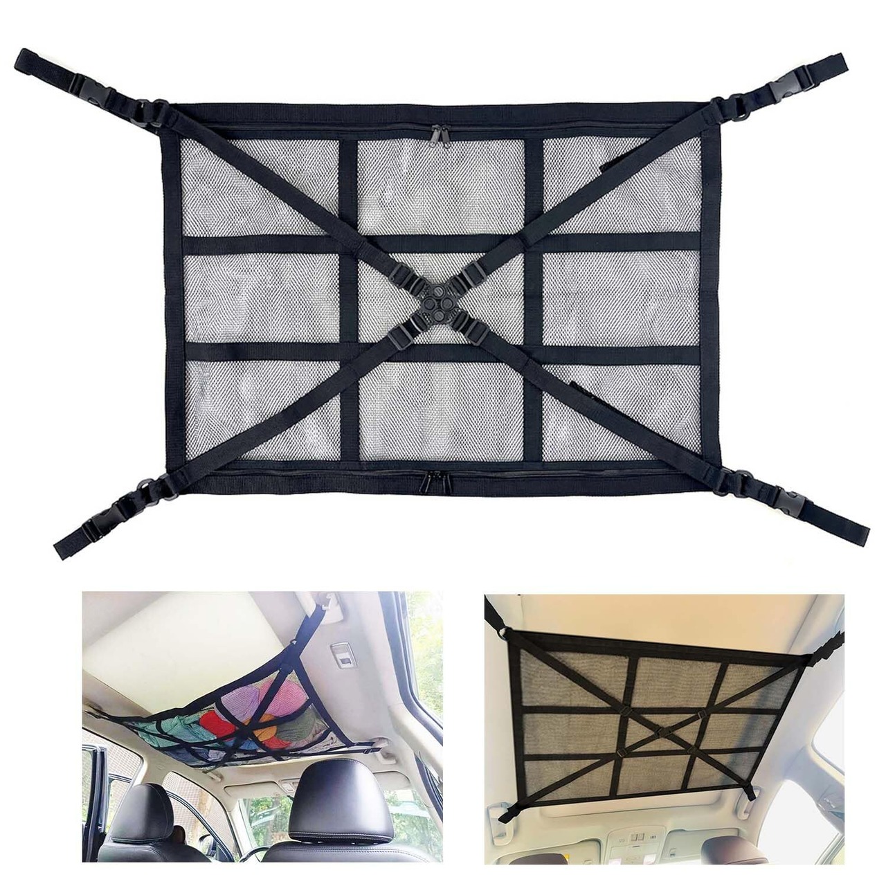 GRTUFOBA 【改良モデル】車 天井ネット 車 収納ネット ジッパー付き(80×55cm)車天井収納 カーゴネット 荷物 収納 便利グッズ ラゲッジネット 天井ネット ルーフネット マルチネット 車中泊