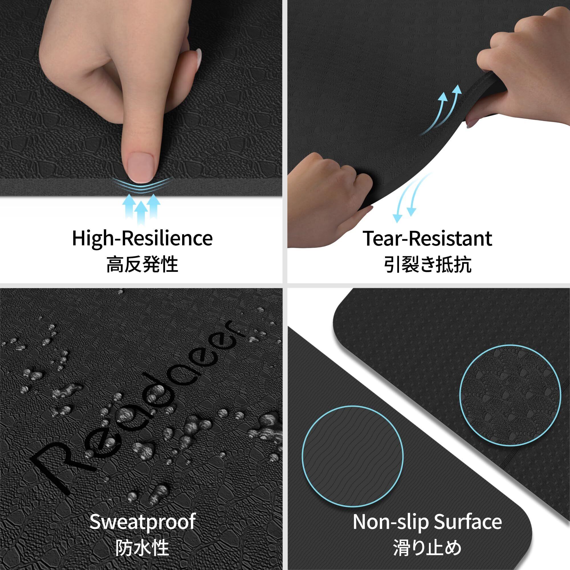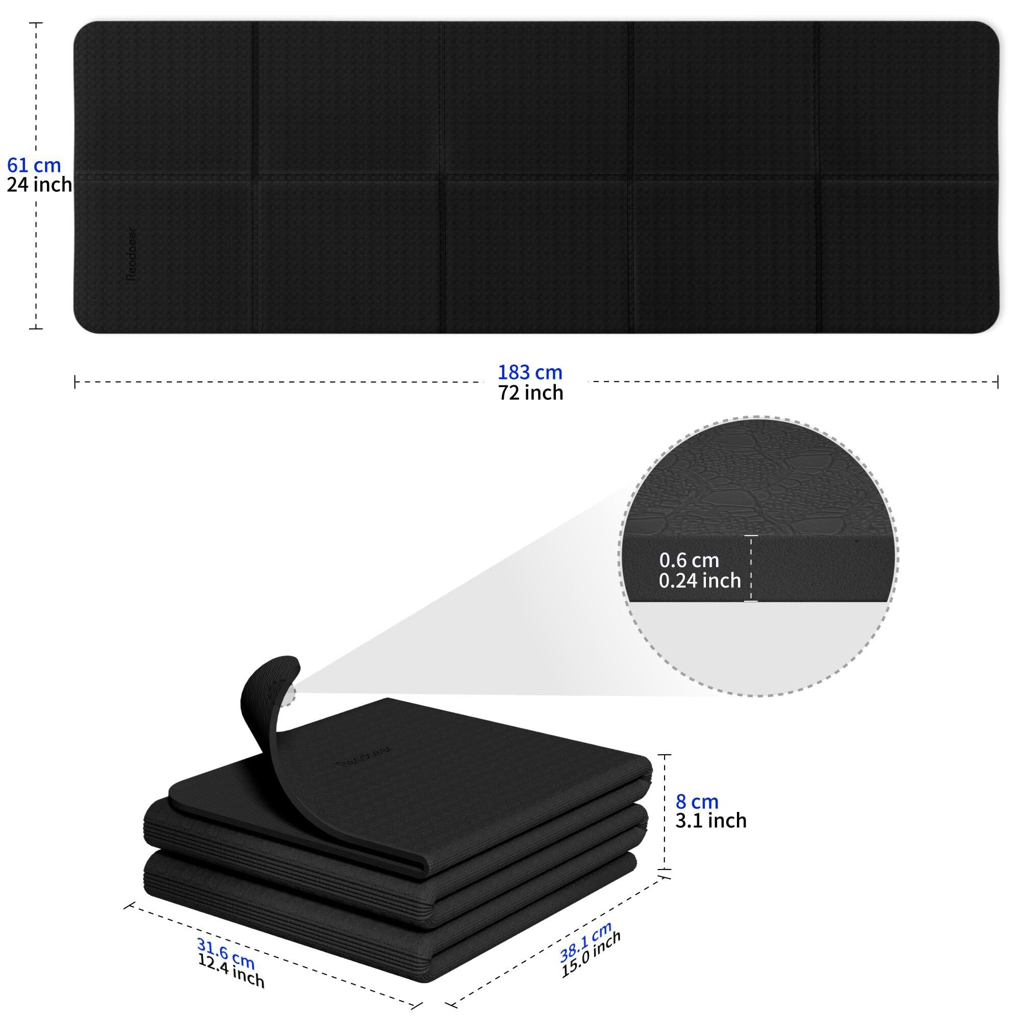 Readaeer ヨガマット トレーニングマット 折り畳み式 183cm×61cm 厚め 6mm TPE素材 無臭 防音 収納バッグ付き 軽量 持ち運び・収納便利 ストレッチマット エクササイズマット フィットネスマット ピラティスマット