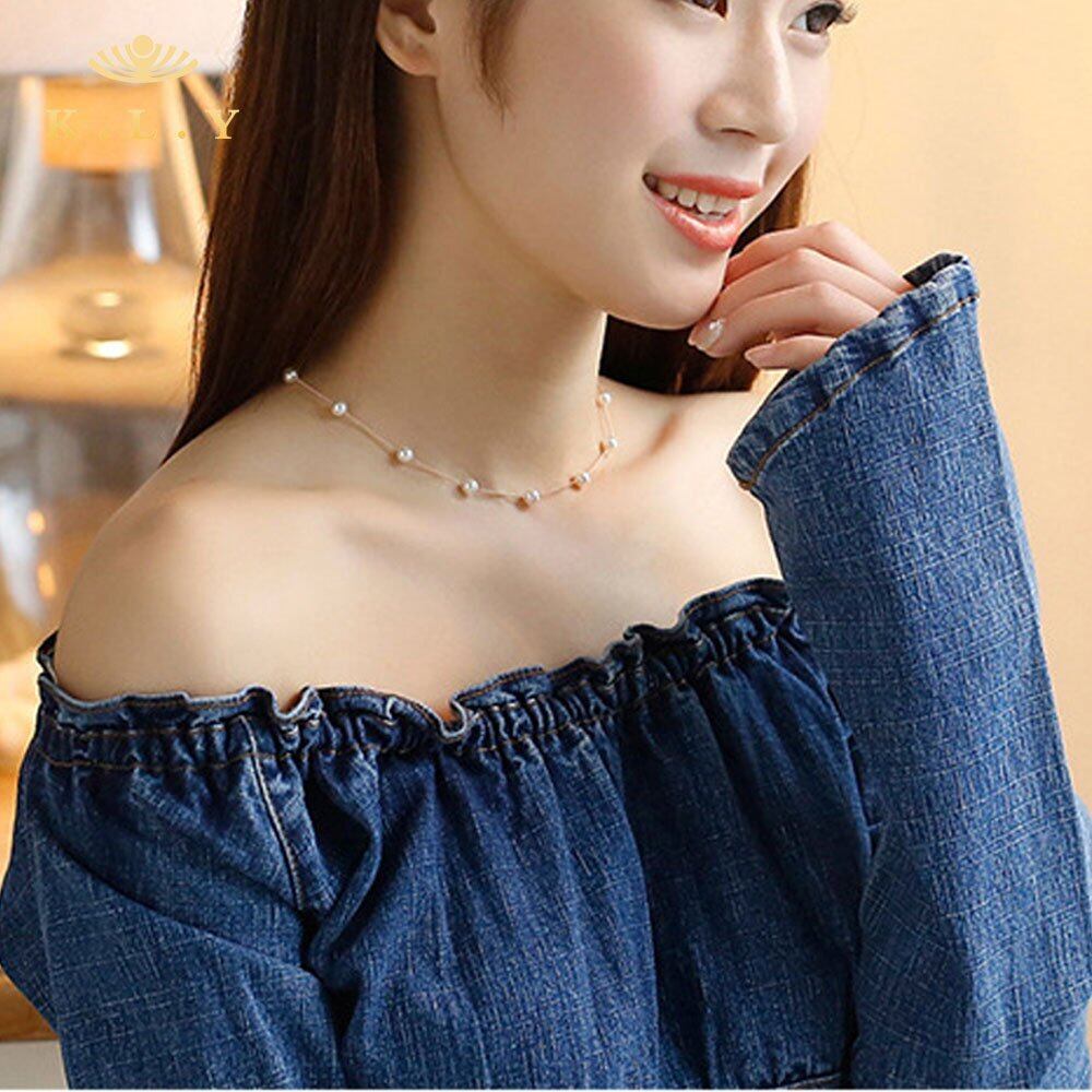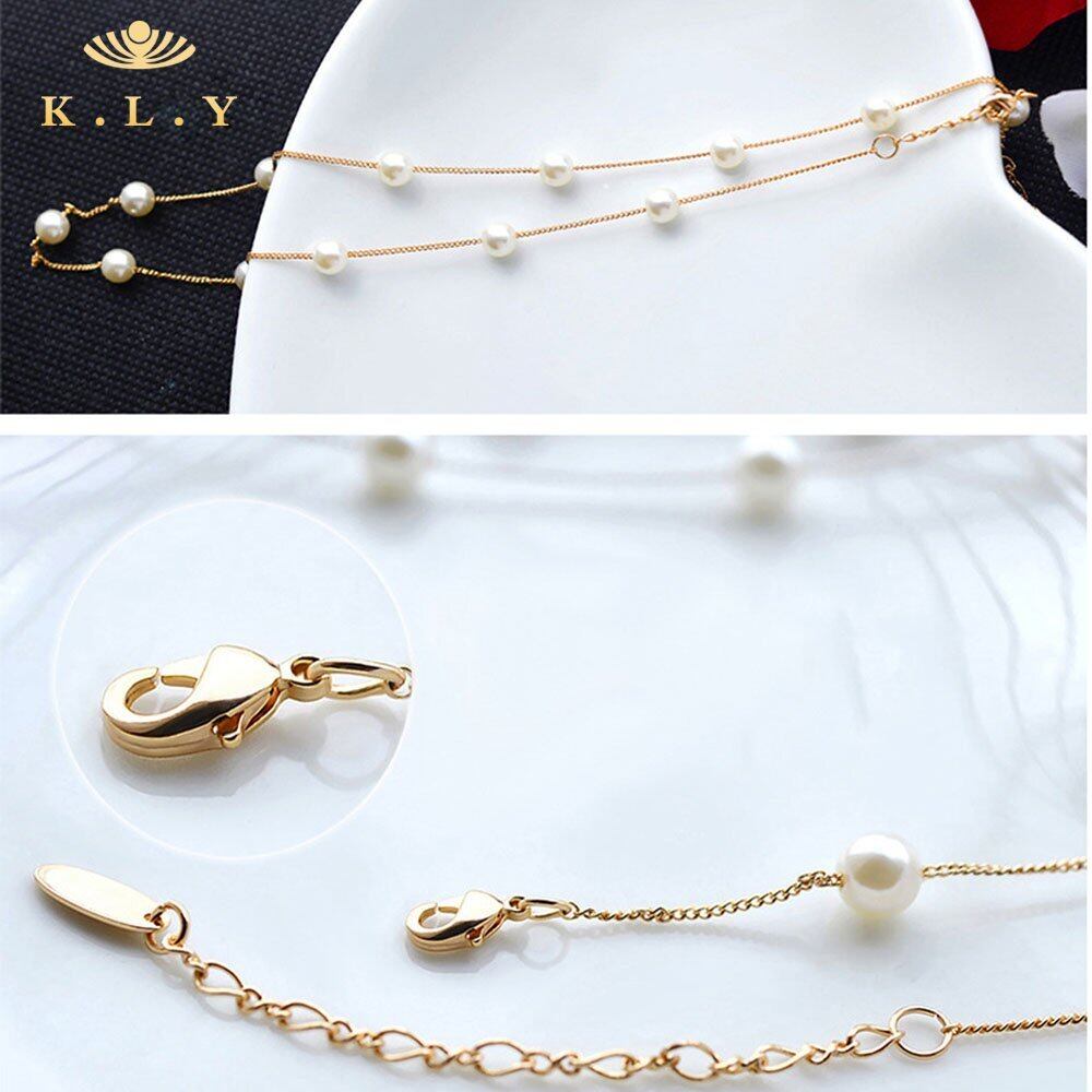 [K.L.Y] レディース ネックレス パール 18金RGP 真珠 ステーション ネックレス3点セット (ピンクゴールド) ギフト包装