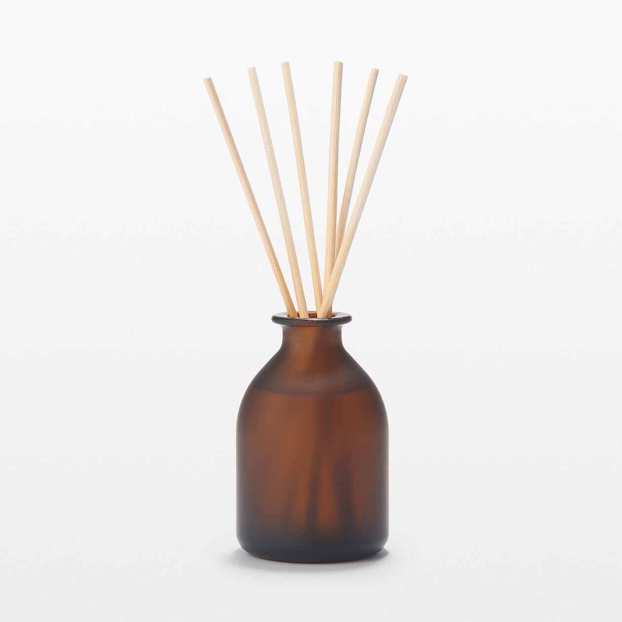 ご使用方法 : 無印良品「インテリアフレグランスオイル」 (別売) にさし込んでご使用ください。さし込むラタンスティックの本数で、香りの調節ができます。香りが弱まりましたら、ラタンスティックを上下逆にしてご使用いただくか、新しいラタンスティック (別売) と交換してください。使用上の注意事項使用後のラタンスティックはオイルを含んでいます。接触するとシミになる原因となりますので、ティシュー等を使い直接触らないよう注意し、捨ててください。フレグランスオイルが肌についた場合は、石けん等でよく洗ってください。ラタンスティックの先端が目等に刺さりケガをするおそれがあります。扱いには十分注意してください。火気に近づけないでください。高温・多湿になる場所、直射日光の当たる場所で使用・保管しないでください。小児やペットの手の届く場所で使用・保管しないでください。天然木のため、長さや形状が不均一だったり、繊維や木皮が残っている場合がありますが、使用には差し支えありません。使用中、ラタンスティックが曲がる場合がありますが、香りや品質には問題ありません。