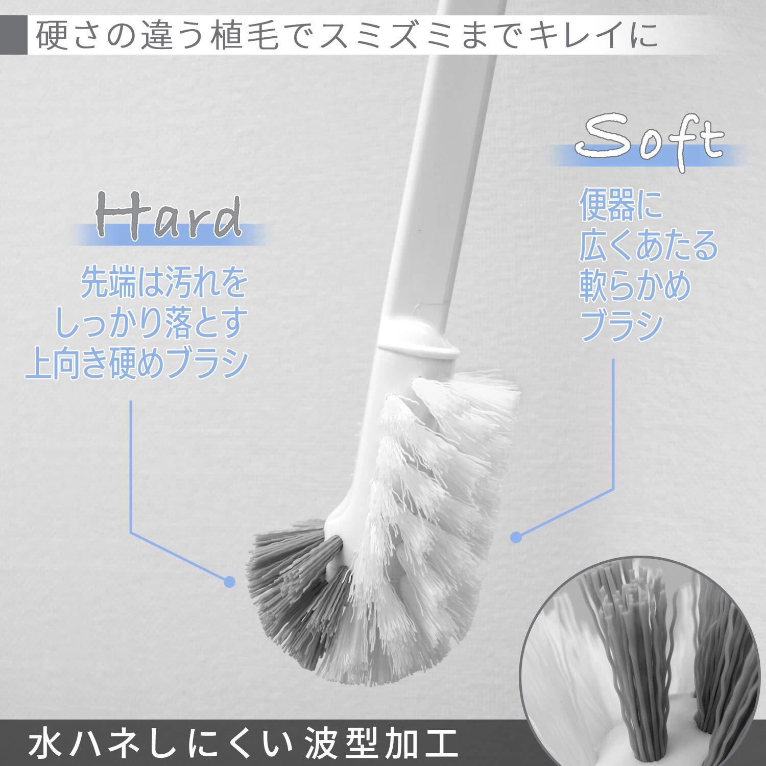 ●ブラシは先端部がハードタイプ。全体はソフトブラシで便器に広くあたる軟らかめブラシでしっかり汚れをとることができます。