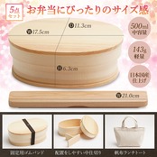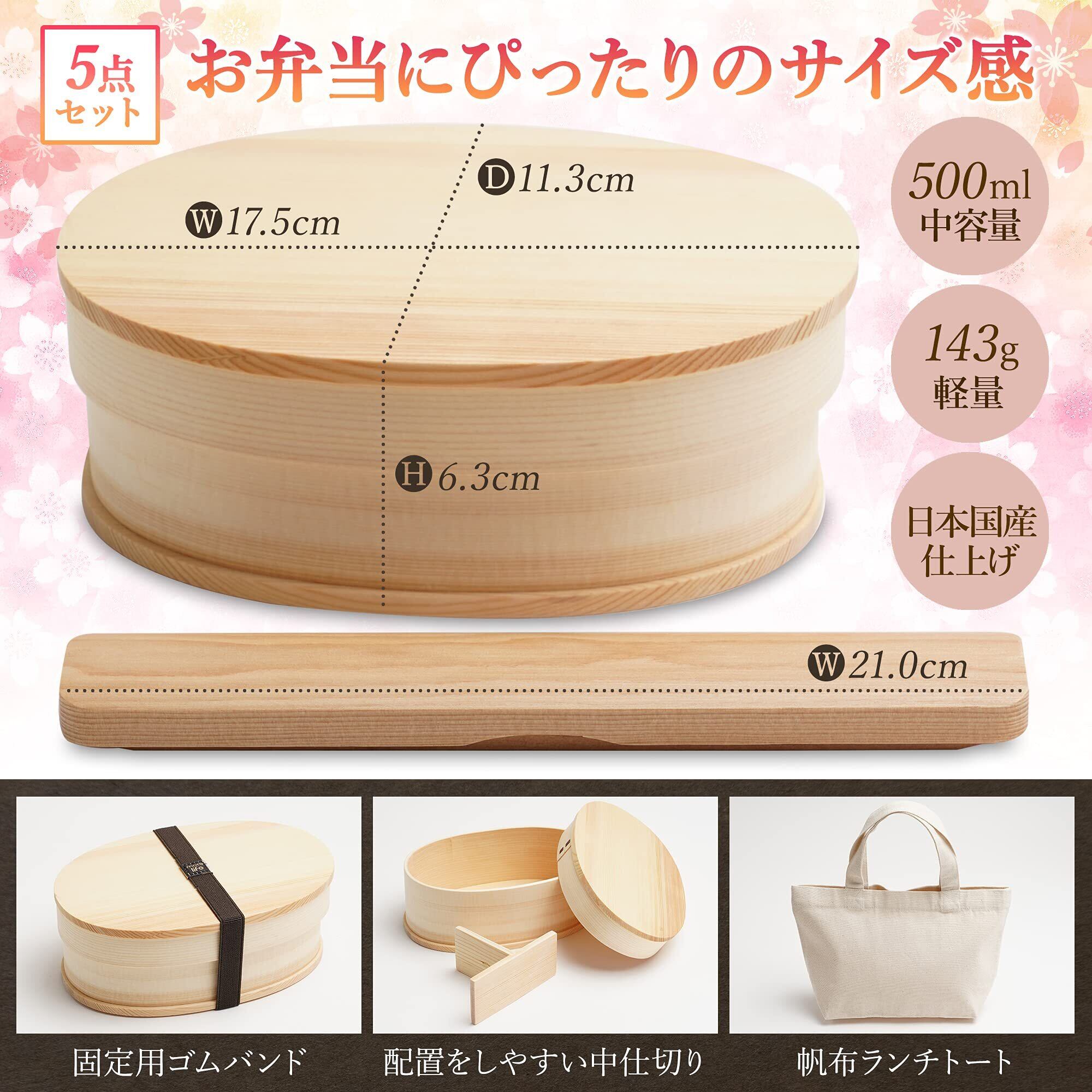 SEIDO まげわっぱ弁当箱 曲げわっぱ 日本製仕上げ 天然木使用 木製箸 帆布ランチバック ゴムバンドセット 500ml