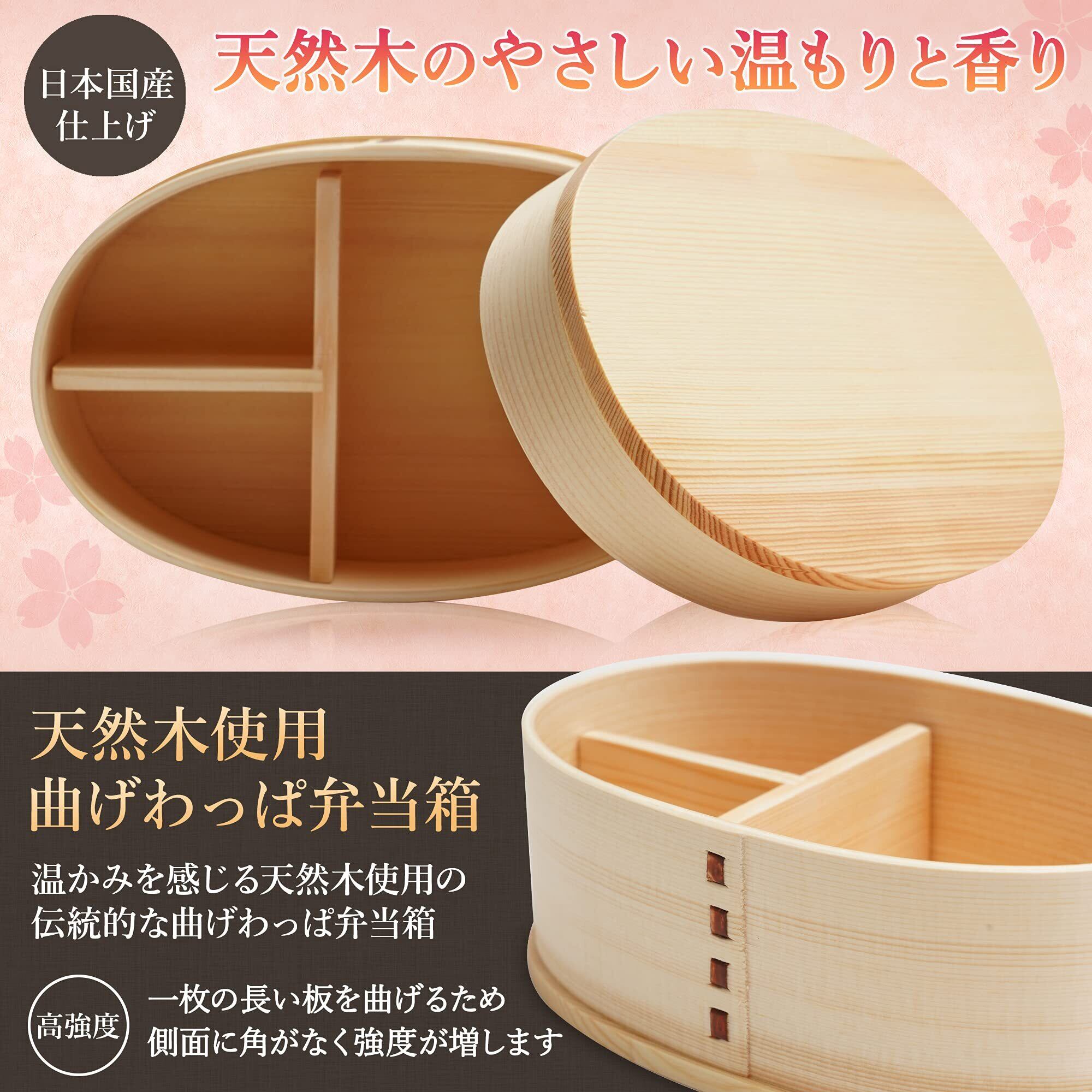 日本国産仕上げの温かみを感じる天然木使用の曲げわっぱ弁当箱
