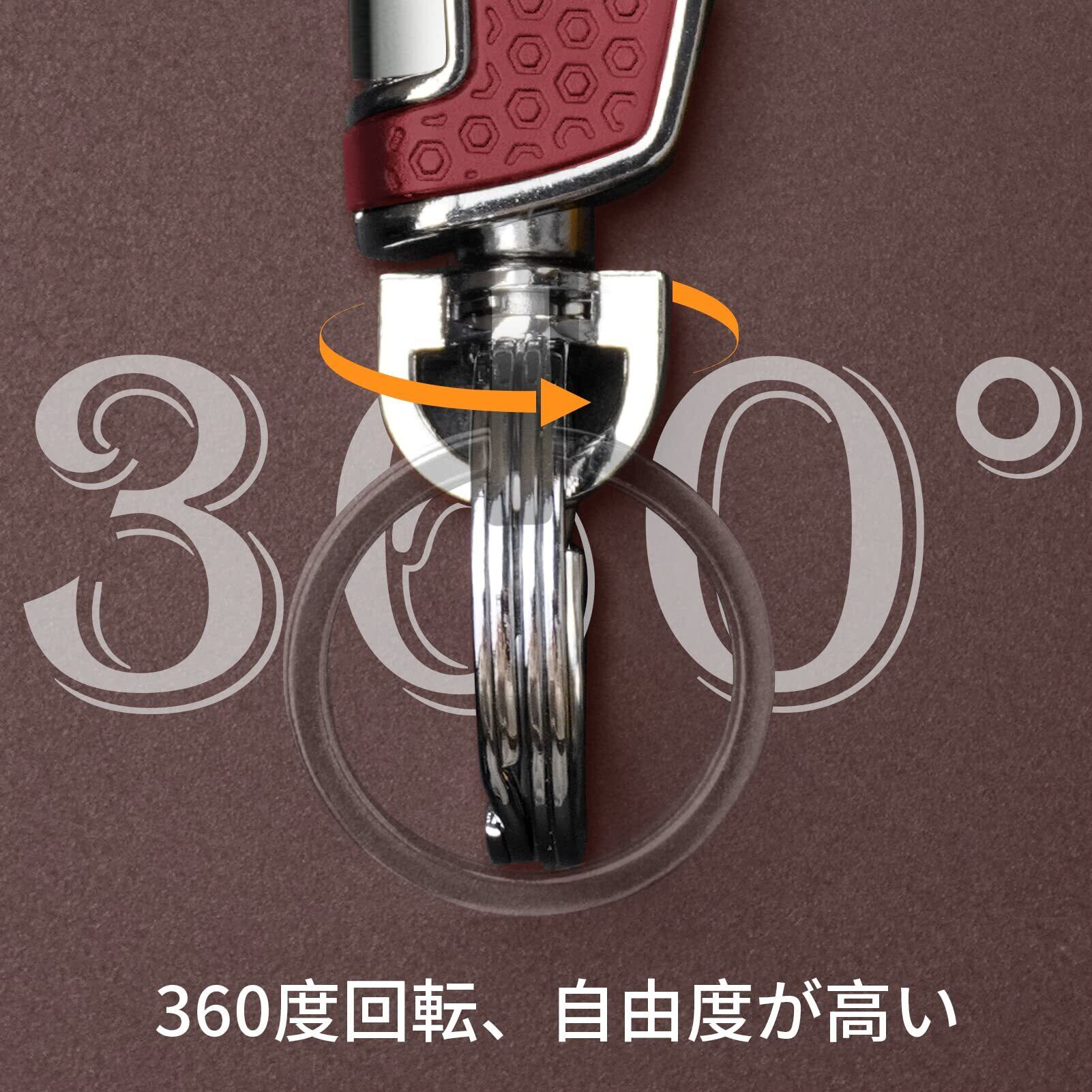 【良質なデザインで使いやすい】使いやすくなるよう考え抜かれたボタン設計により、爪の傷が気になる方はボタン操作で押して開けることができます。もちろんフックの閉じた部分を押して開けることもできます。360度回転するので使用時の自由度が高く使いやすくなっています。