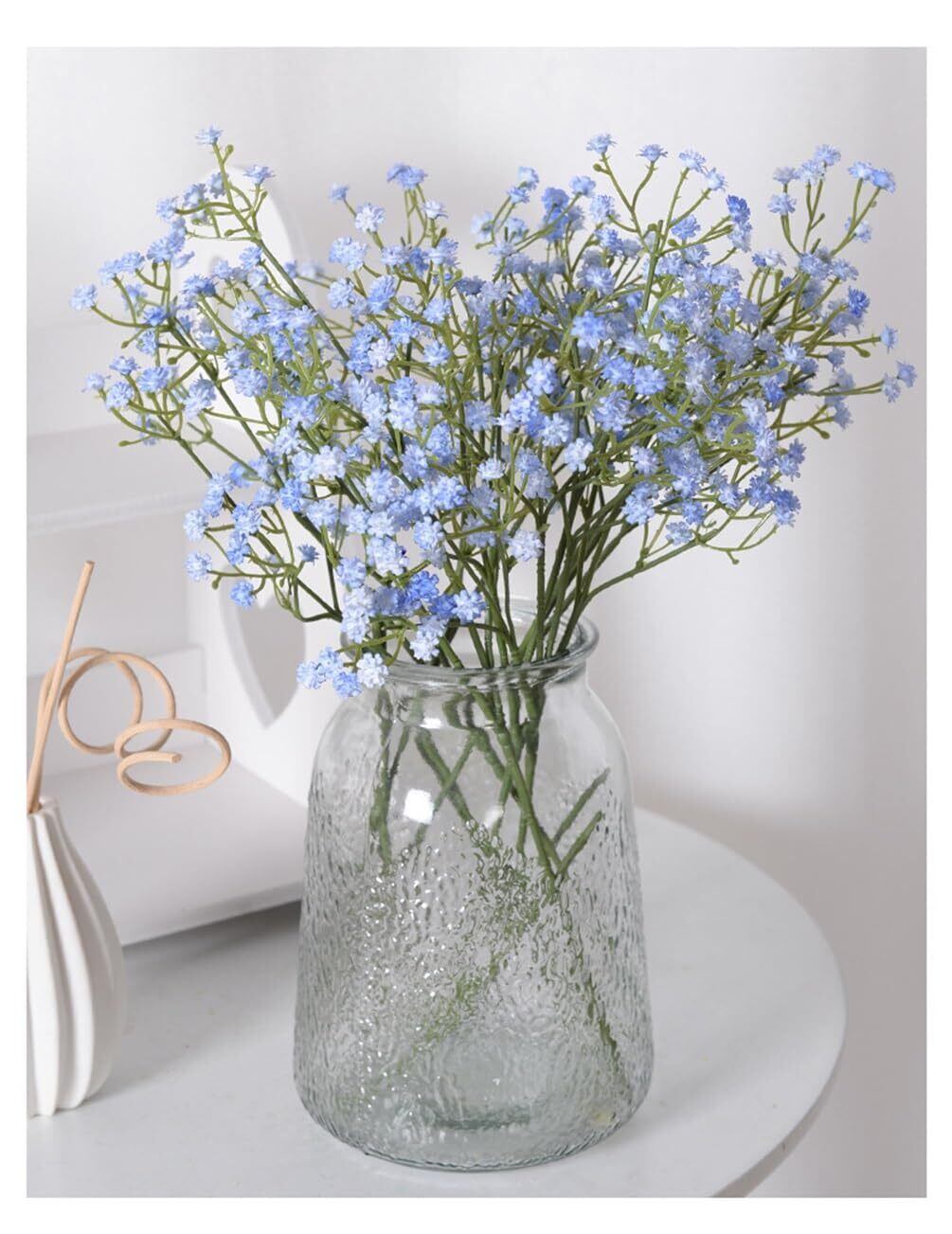 【春の雰囲気】装飾花として最適です。特別な青くて上品なかすみ草は、春をより美しくし、春の暖かさに満ちた感じを人々にもたらします。オフィスや家庭に自然な雰囲気を加えて、寝室や食卓に置いて、自然の中にいるような感覚も味わうことができるのです。