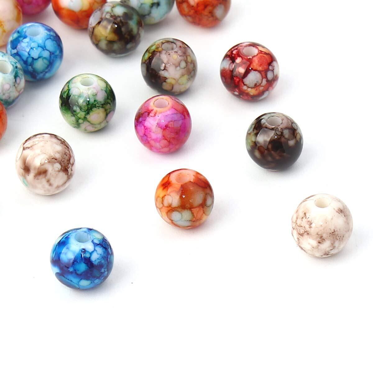 300個 水墨柄 アクリルボールビーズ ミックスアソート マーブル 8mm 穴:1.6mm クラフト 手芸用品 ジュエリー アクセサリーパーツ Huey 手芸材料のヒューイ h2217s66