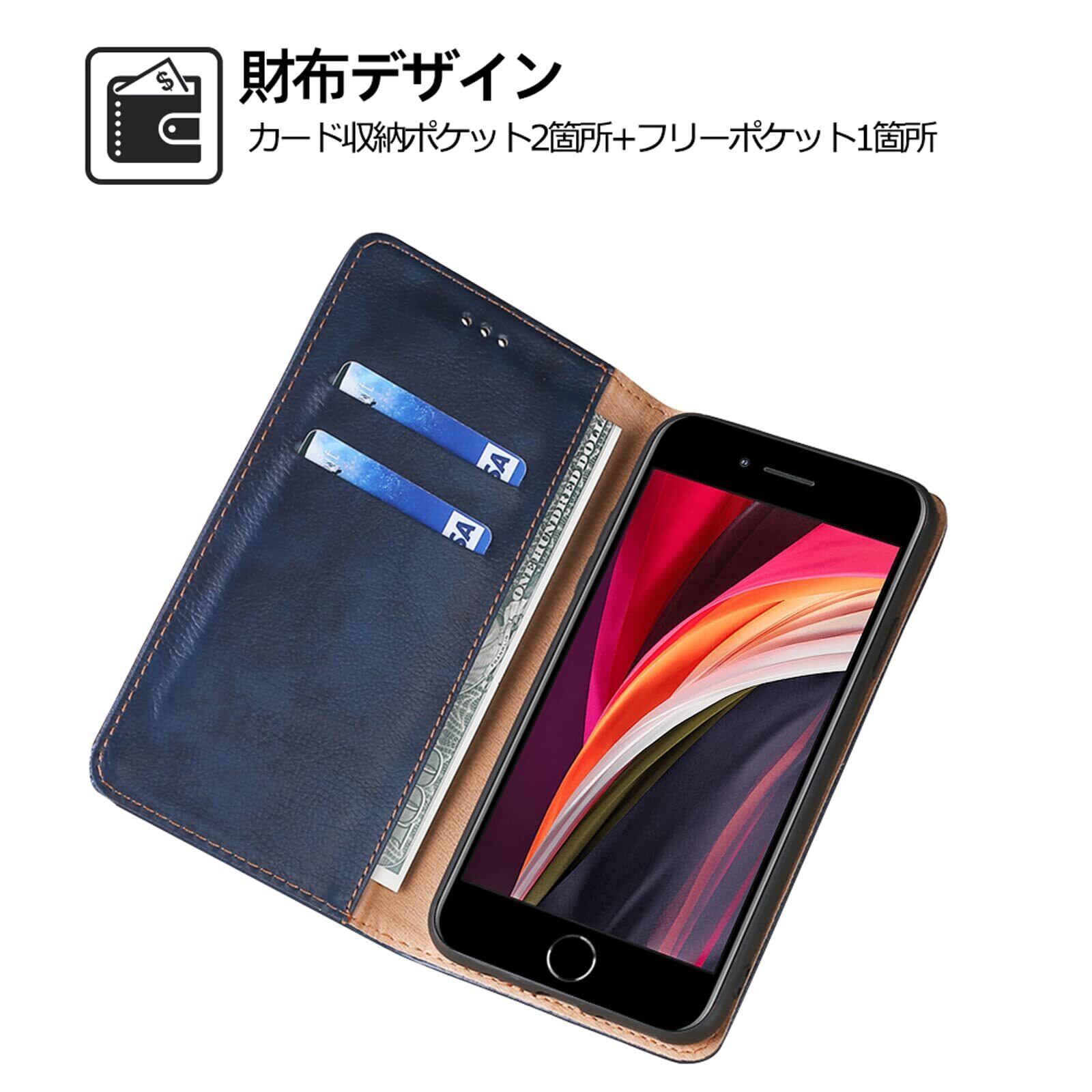 iPhone SE ケース 第2世代 第3世代 iphone8/7 ケース 手帳型 スマホケース 携帯カバー PUレザー カード収納ケース マグネット式 スタンド機能アイフォンse 4.7インチ対応 360度保護 PinLiSheng (ダークブルー, iPhone SE2 iPhone SE3 iPhone8 iPhone7)