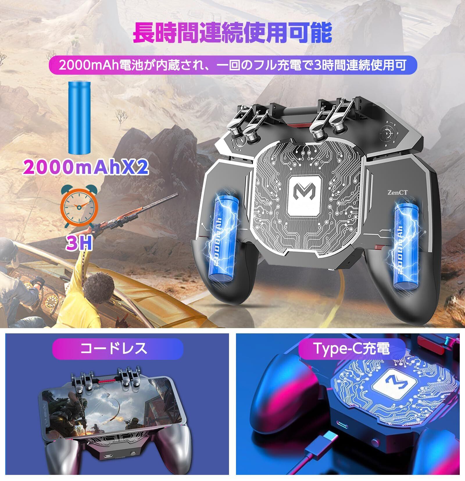 ZenCT スマホゲーム コントローラー 6本指 ペルチェ素子クーラー 冷却機能付き コードレス USB充電式 2000mAhX2 荒野行動 PUBG Mobile call of duty モバイルコントローラー 引き金式 高反応 高速射撃ボタン クリック感 エイムアシスト CT232