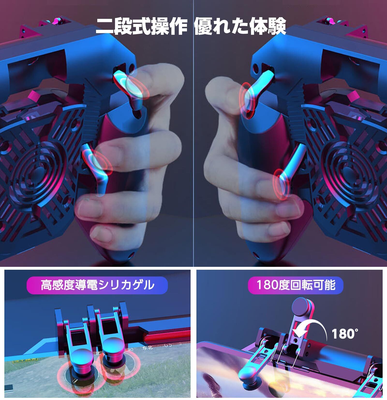 【引き金式トリガー】引き金式デザインを採用、ゲームの臨場体験を強化し、リアルな引き金を引く射撃触感を再現できます。射撃、照準、ジャンプ、伏せる、移動、歩行転換がスムーズにでき6本指同時操作可能、操作ボタンを様々なアクションに組み合わせて、勝率アップも目指せます。