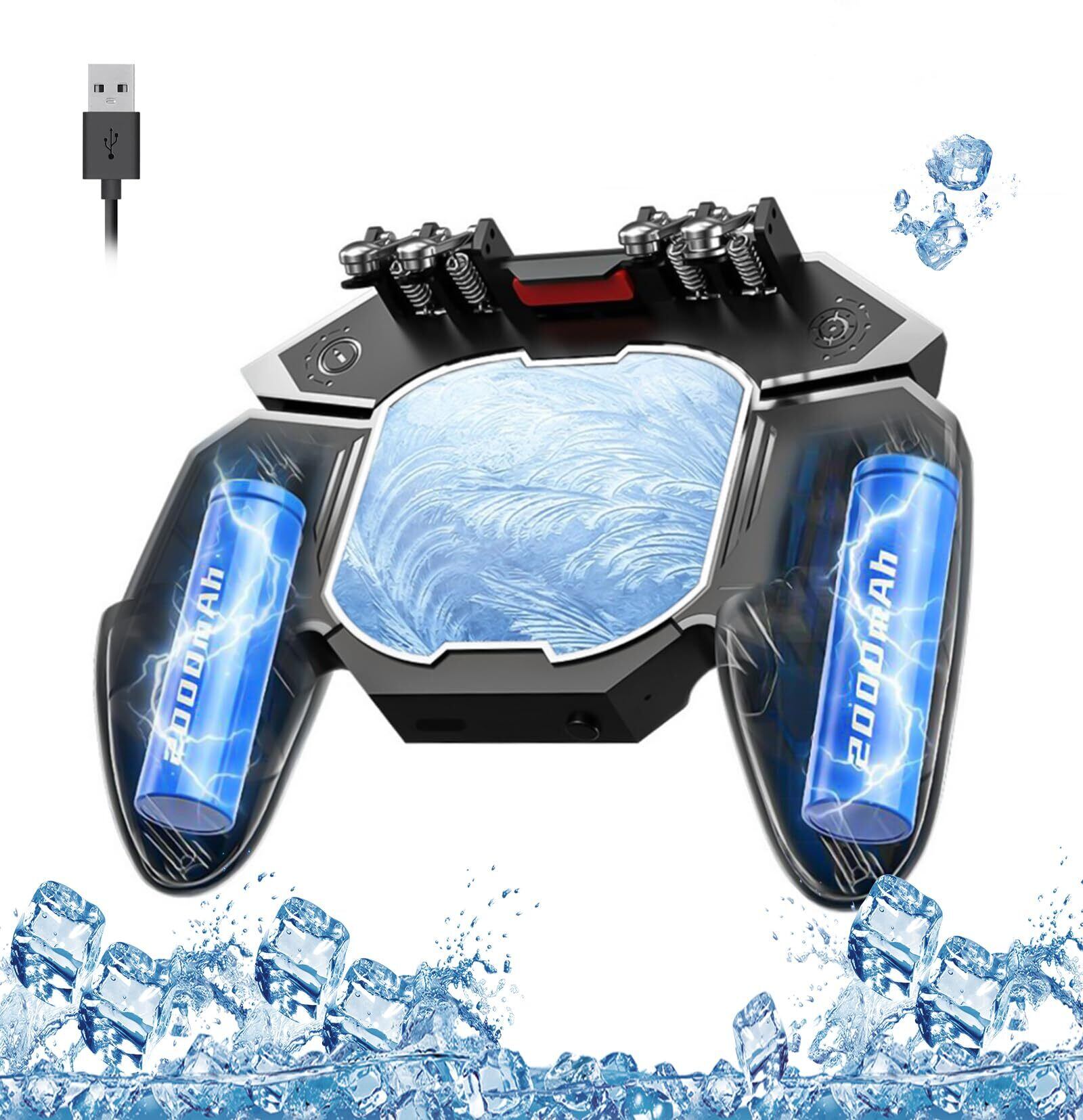 【コードレスUSB充電式スマホコントローラー】半導体冷却装置付きの六本指操作スマホ用ゲームコントローラーが登場!2000mAhX2の大容量バッテリーが内蔵され、一回のフル充電で約3時間連続使用が可能。いつでもどこでも大人気なスマホゲーム「PUBGモバイル」「荒野行動」「フォートナイト」等がよりよく楽しめます。