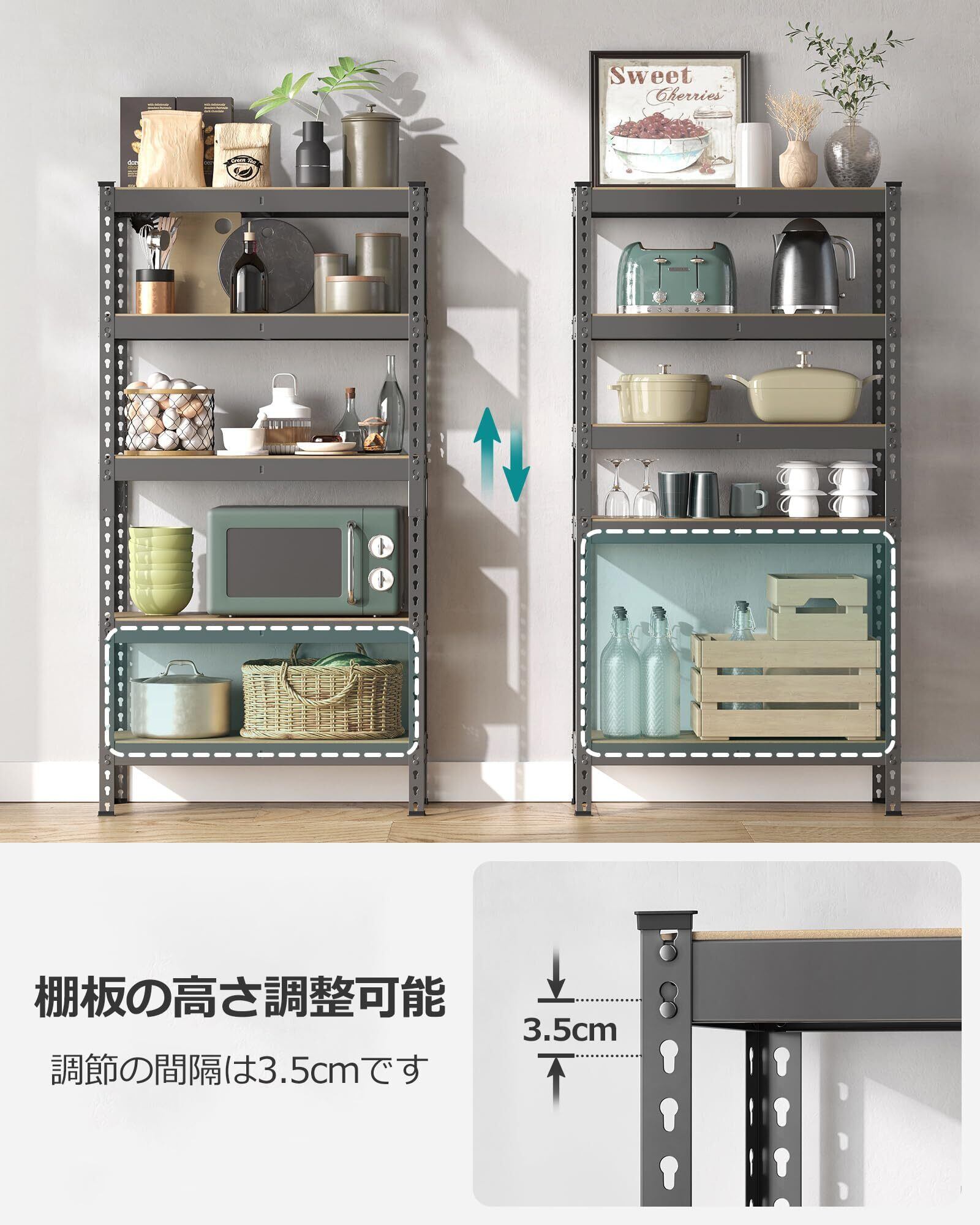 SONGMICS スチールラック 5段 スチールシェルフ オープンラック オープンシェルフ ラック 棚 おしゃれ キッチンラック 収納ラック 収納棚 本棚 キッチン 収納 総耐荷重875kg 150*75*30cm グレーGLR300G01
