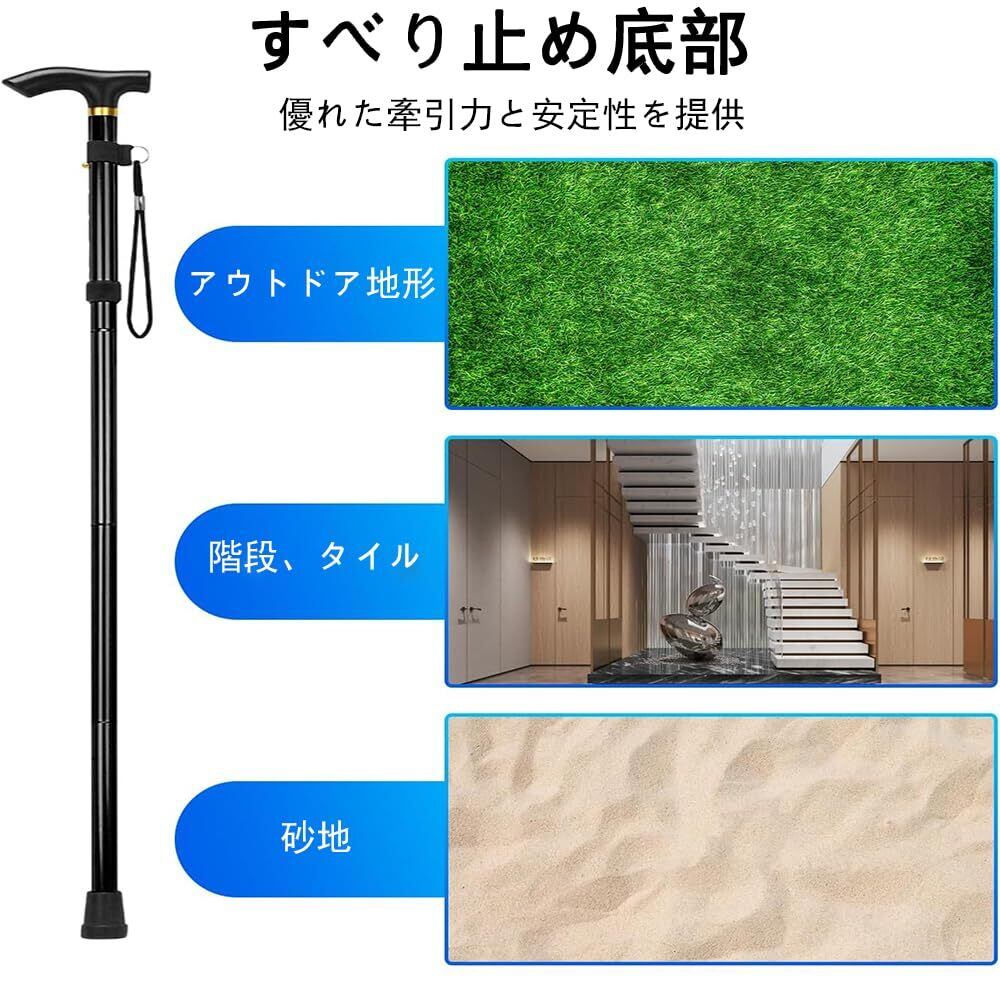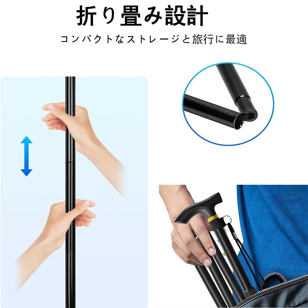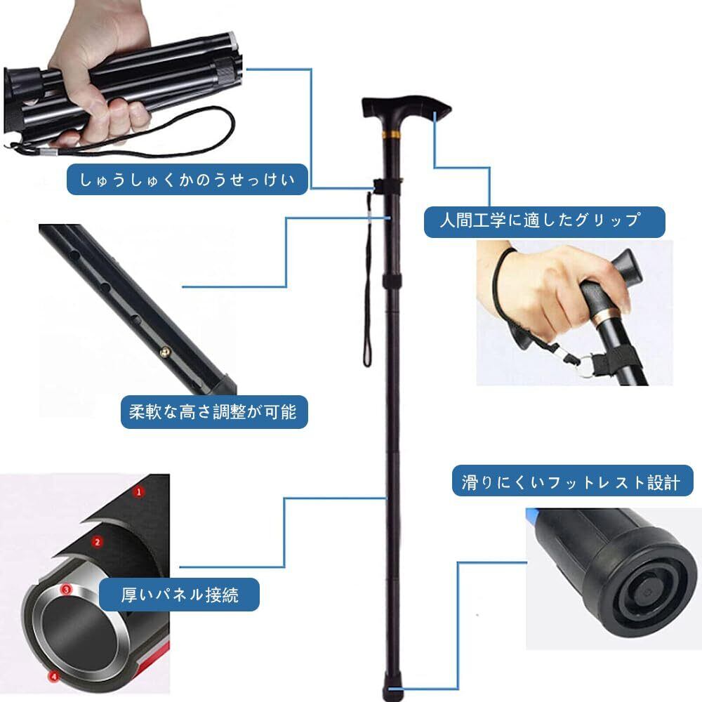 ポータブル折りたたみ設計:この杖は簡単に折りたたみ、バッグやスーツケースに入れることができ、持ち運びに便利です。旅行でも日常使いでも、いつでも確実な歩行サポートを提供してくれます。