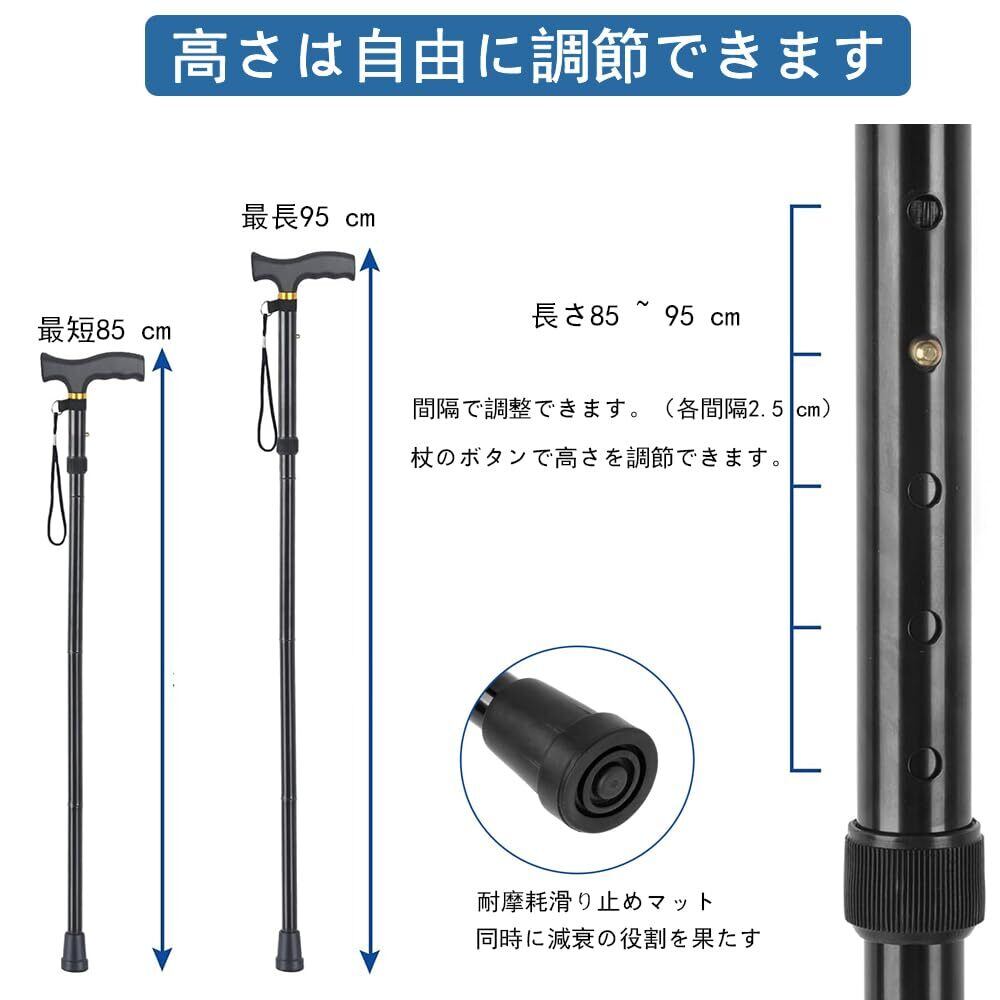 LEACAGR 折りたたみ杖 折りたたみ ホルダー 伸縮式杖 歩行支援 アルミニウム製 超軽量 携帯に便利 男性 女性 おしゃれ 伸縮 5段階調整 85-95cm 歩行補助杖