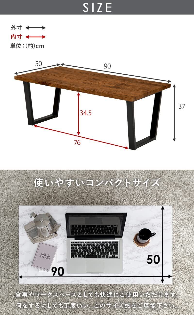 萩原(Hagihara) ローテーブル センターテーブル テーブル 机 【大理石調天板×スチール脚】 シック モダン リビング ソファテーブル 幅90 奥行45 高さ32 ホワイト 白 頑丈 LT-4395MWH
