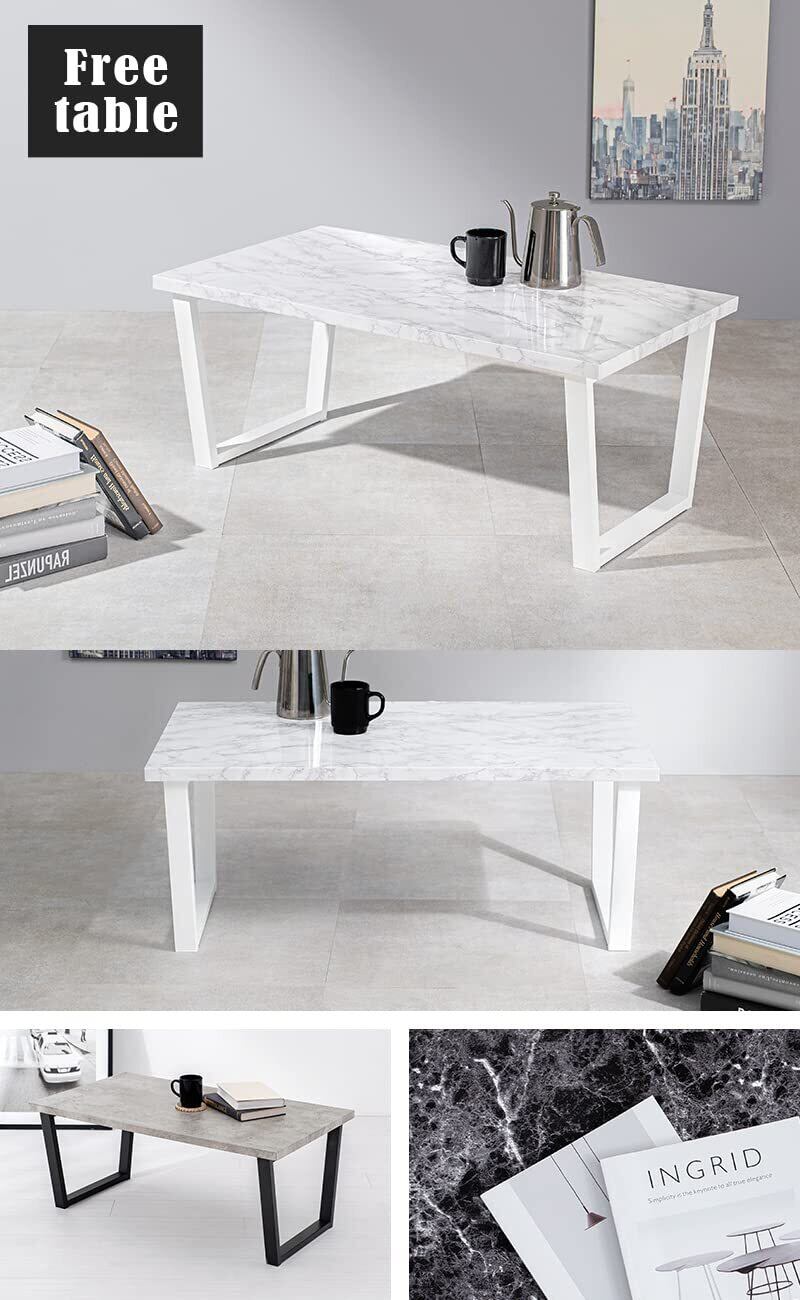 【異素材の組合わせでデザイン性UP】:リアルで本物に近い大理石調シート張りの天板と耐久性に優れたスチール脚がインテリアとしての存在感を発揮。