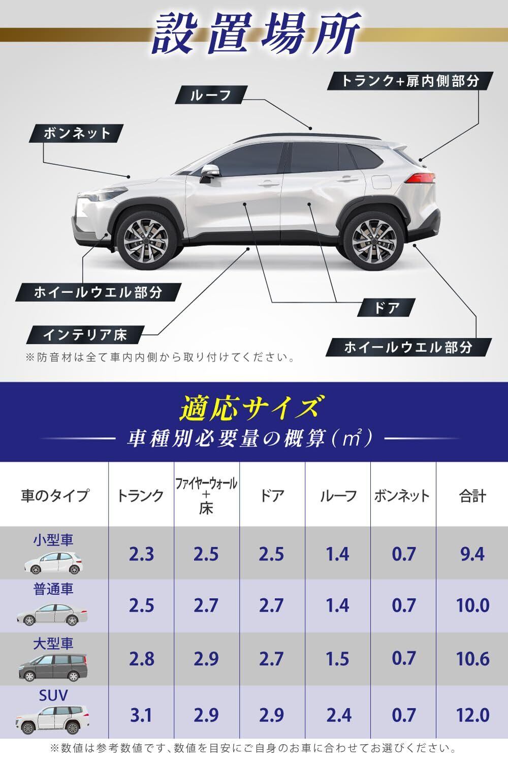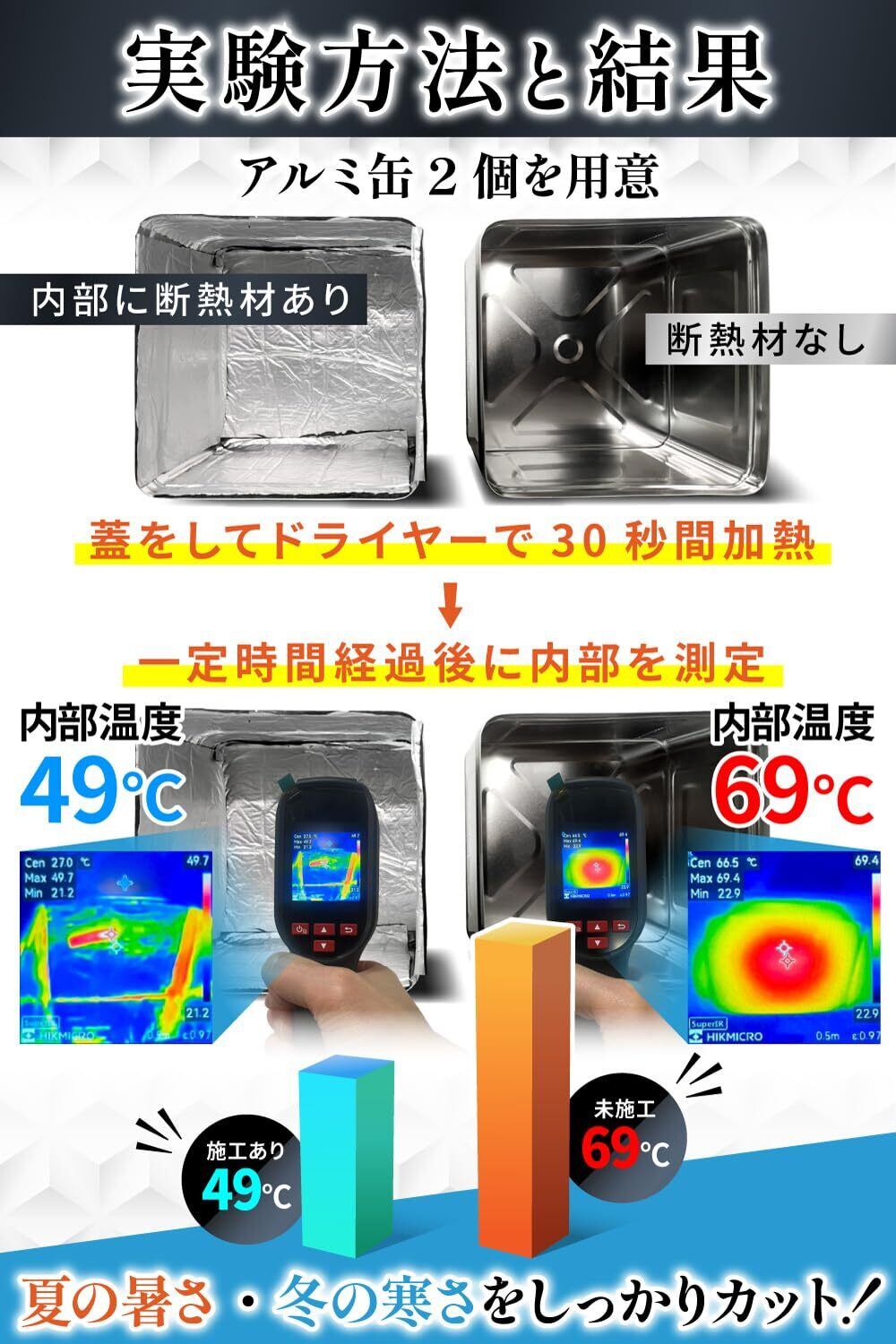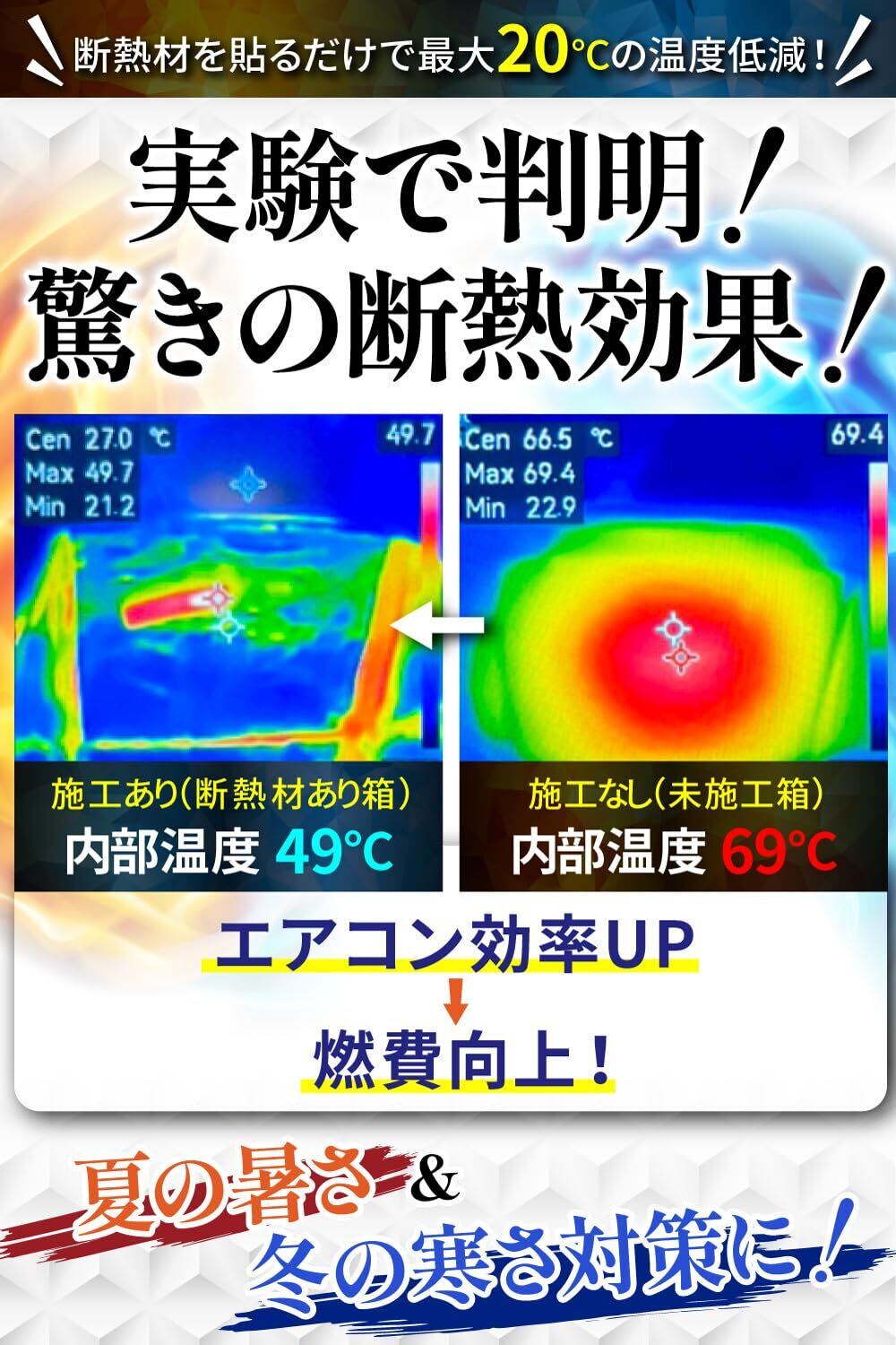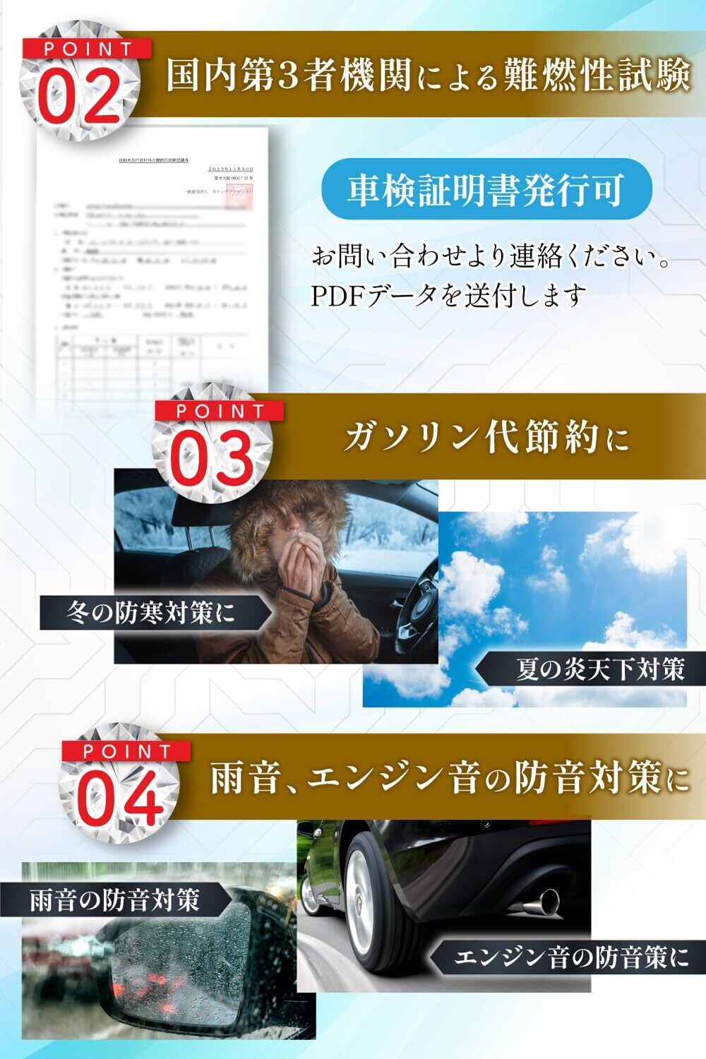 【 整備士歴9年時安一希さん監修 】整備士歴9年時安一希さん監修。専門家監修による信頼設計。商品の5つのおすすめポイント1.厚みがあり、しっかり断熱材効果がある。ポイント2.夏冬の冷暖房効果を高めてくれるポイント3.難燃性試験をクリアしており、安心感がある。ポイント4.サイズが大きく、1つでも多くの箇所を施工できる。ポイント5.防音効果もある