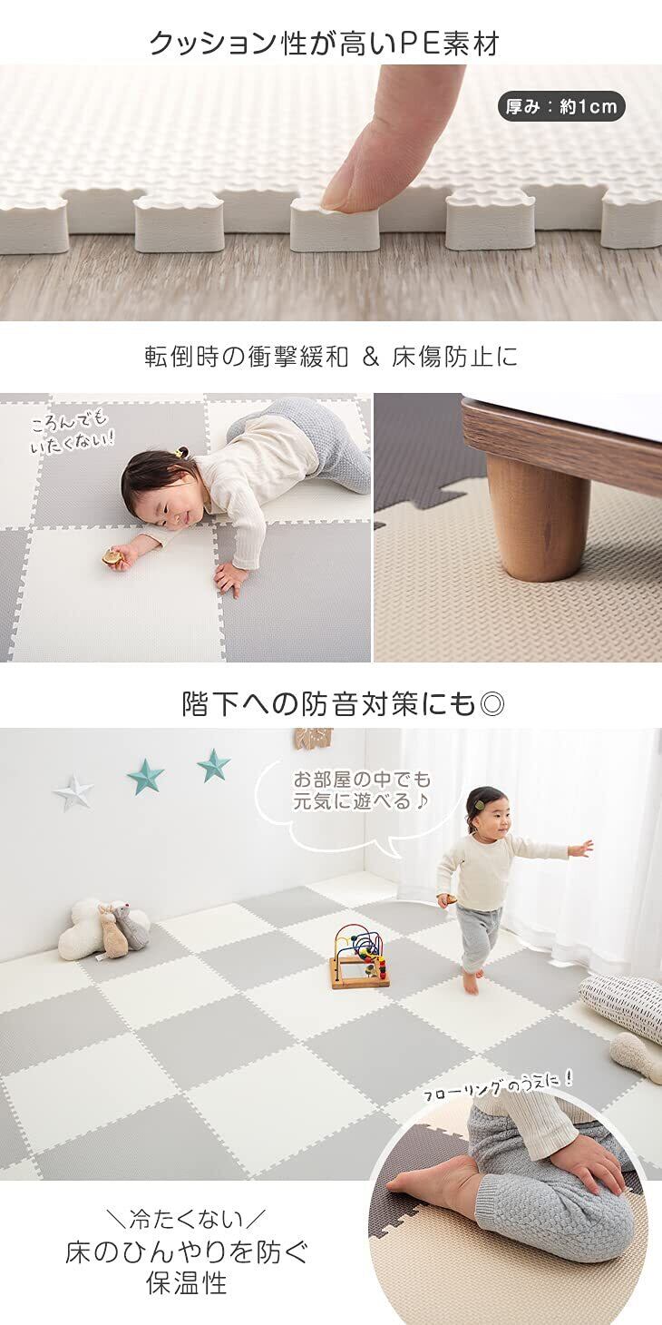 タンスのゲン ジョイントマット 43cm 厚み10mm 6畳用 48枚組 防音 保温性 床暖房対応 ノンホルムアルデヒド サイドパーツ付き グレー×アイボリー 31800034 10 (74150)