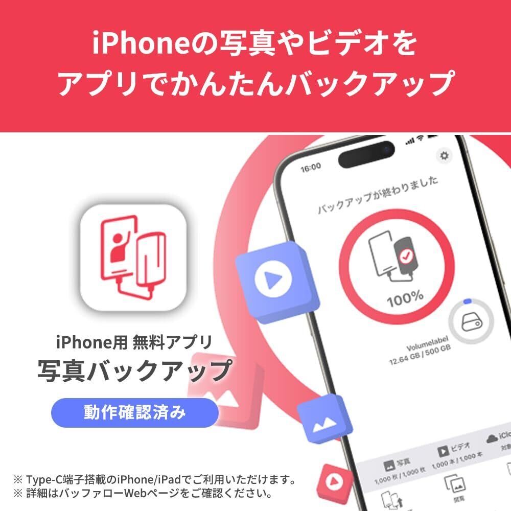 バッファロー SSD 外付け 2.0TB USB3.2 Gen2 読込速度600MB/秒 PS5/PS4メーカー動作確認済 コンパクト 小型 Type-Cアダプター付属 ブラック 【 iPhone 16 / 16 pro 動作確認済み 】 SSD-SCT2.0U3BA/N